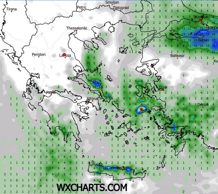 ΑΝΕΜΟΙ: Στα πεδινά βόρειοι 2-3 μποφόρ και στα θαλάσσια βόρειοι βορειοδυτικοί 6-7 μποφόρ και από το απόγευμα βορειοανατολικοί με την ίδια ένταση.