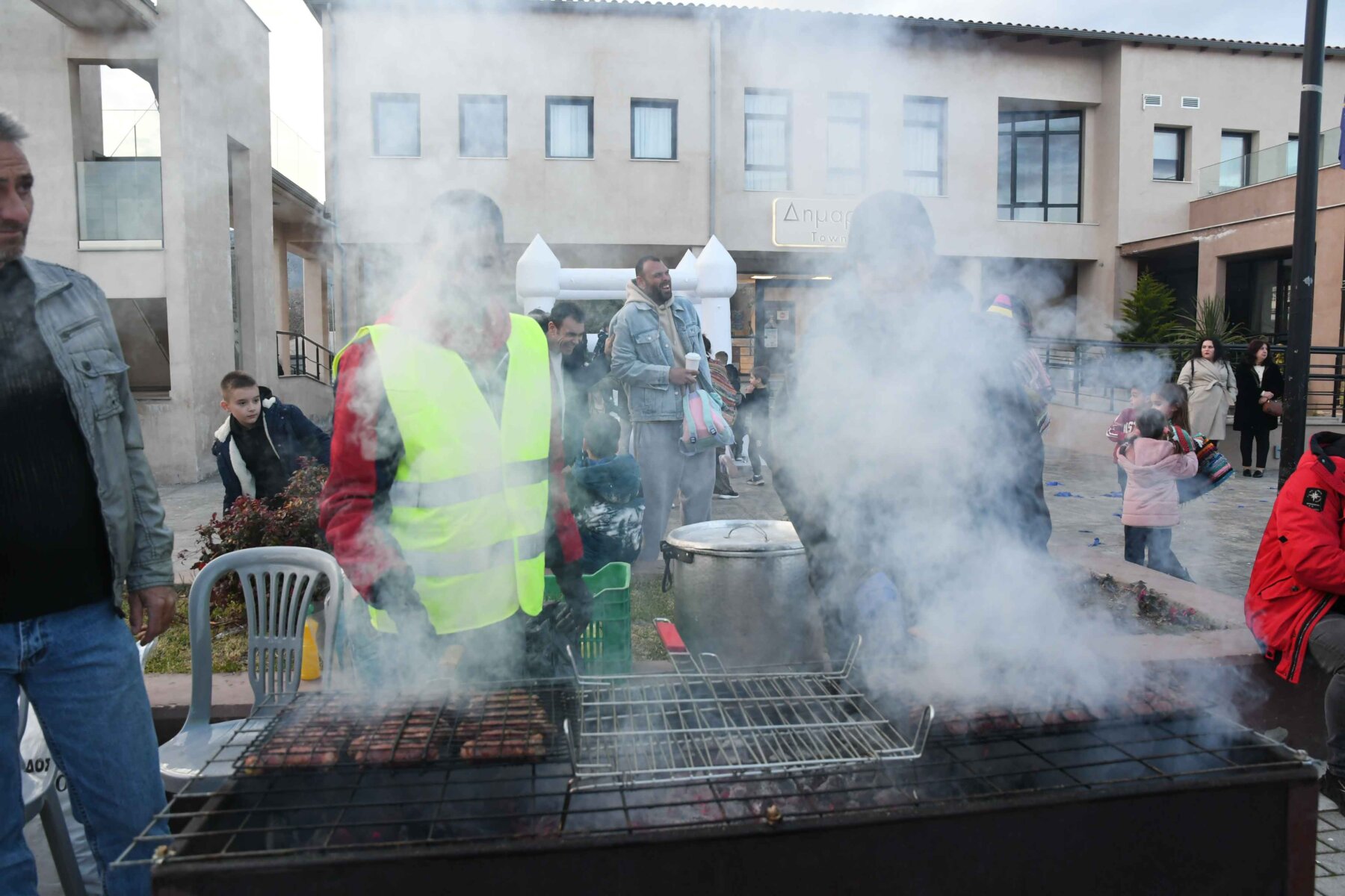 Λουκάνικα, πίτες και κρασί προσφέρθηκαν σε όλους.