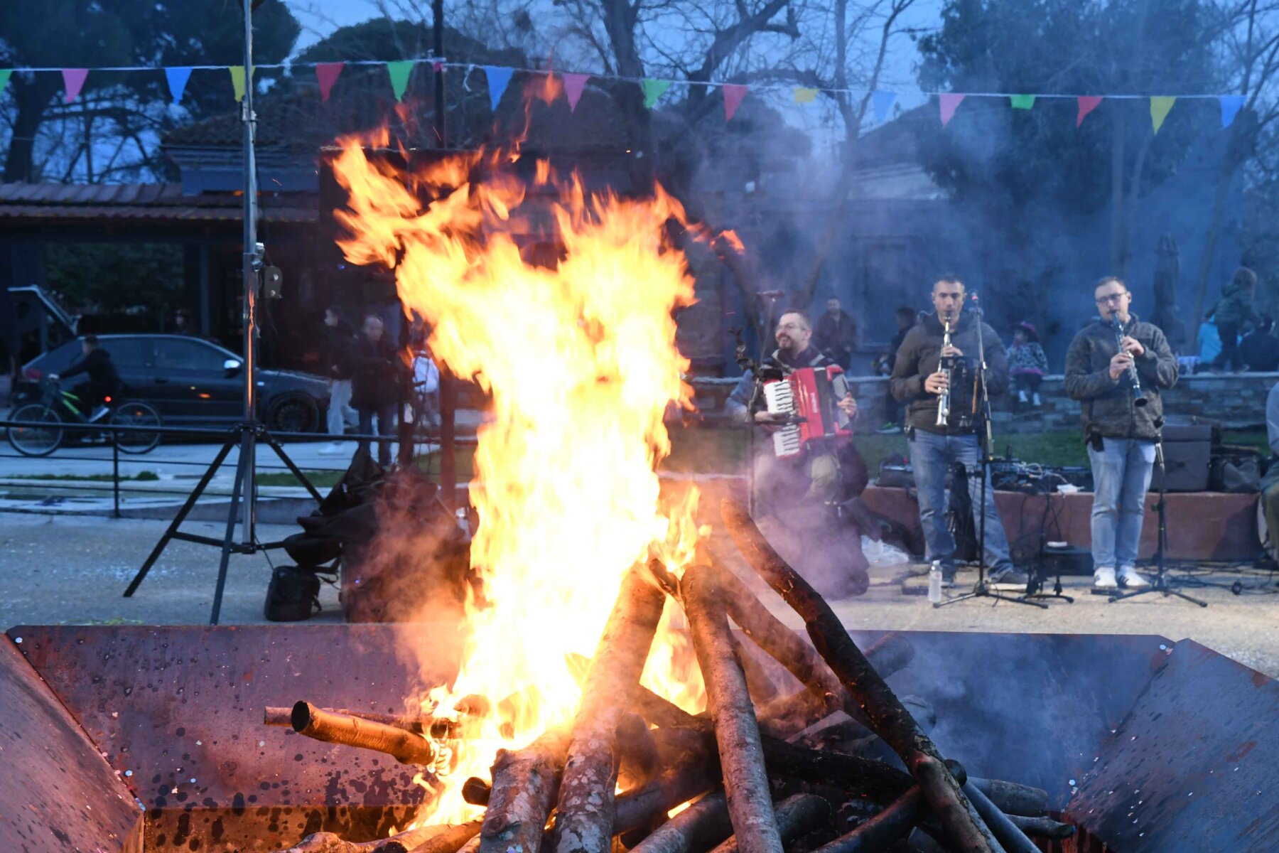 6:00μμ, άναμμα φωτιάς, παραδοσιακά τραγούδια του χωριού, γαϊτανάκι, κάψιμο καρνάβαλου, κρασί και σουβλάκια για όλους.