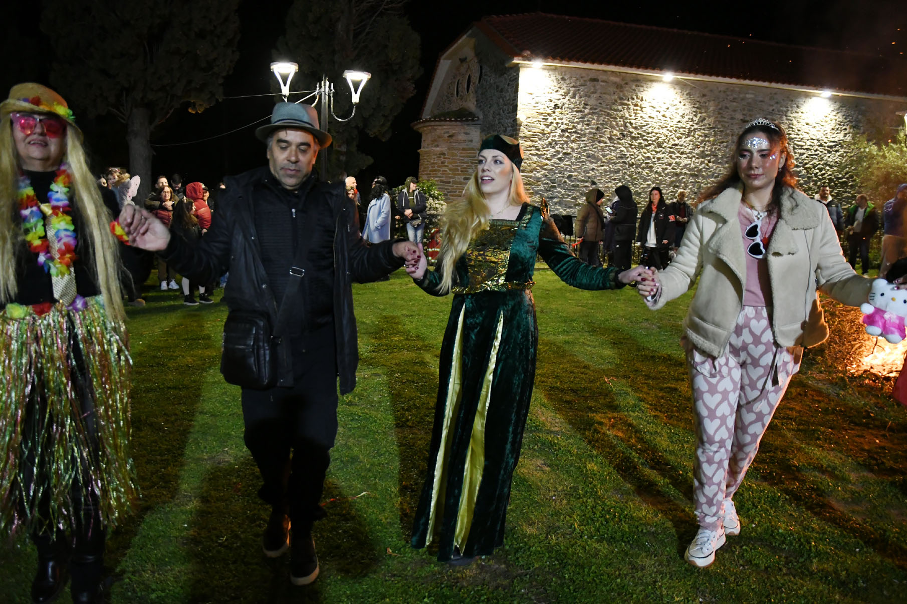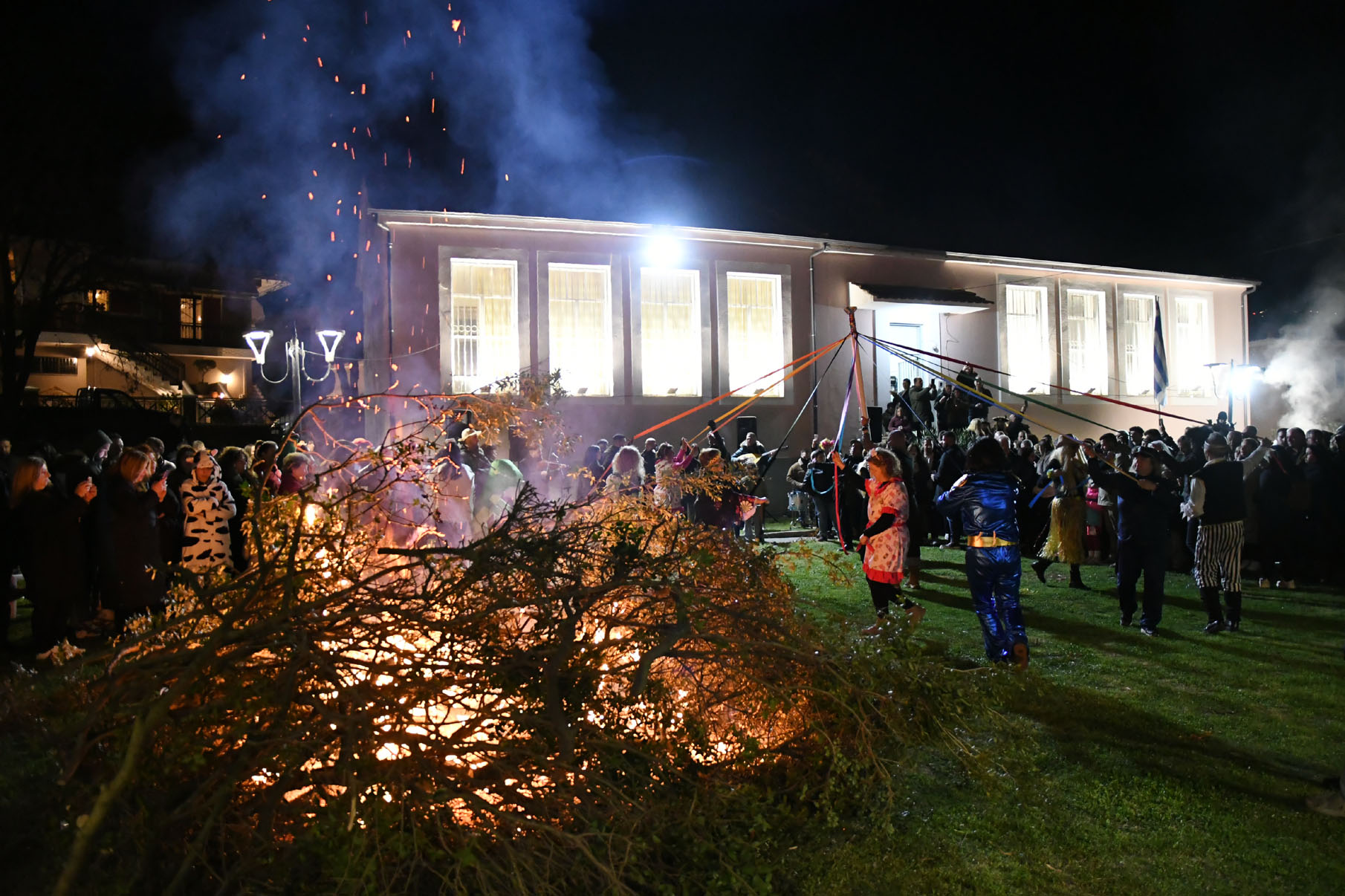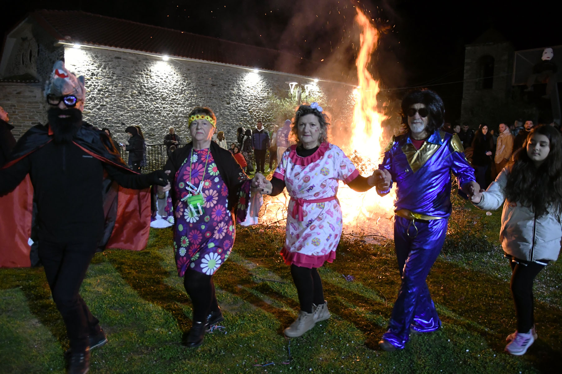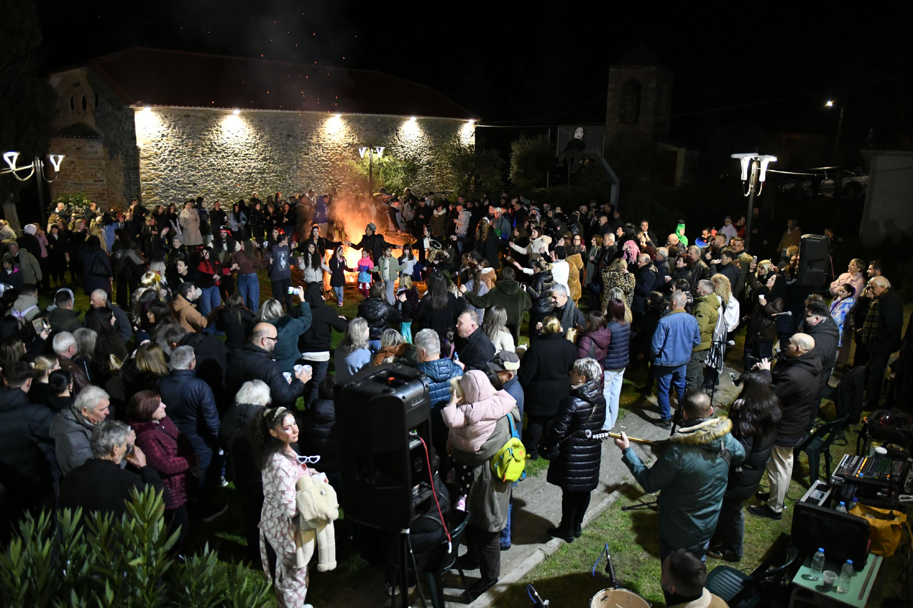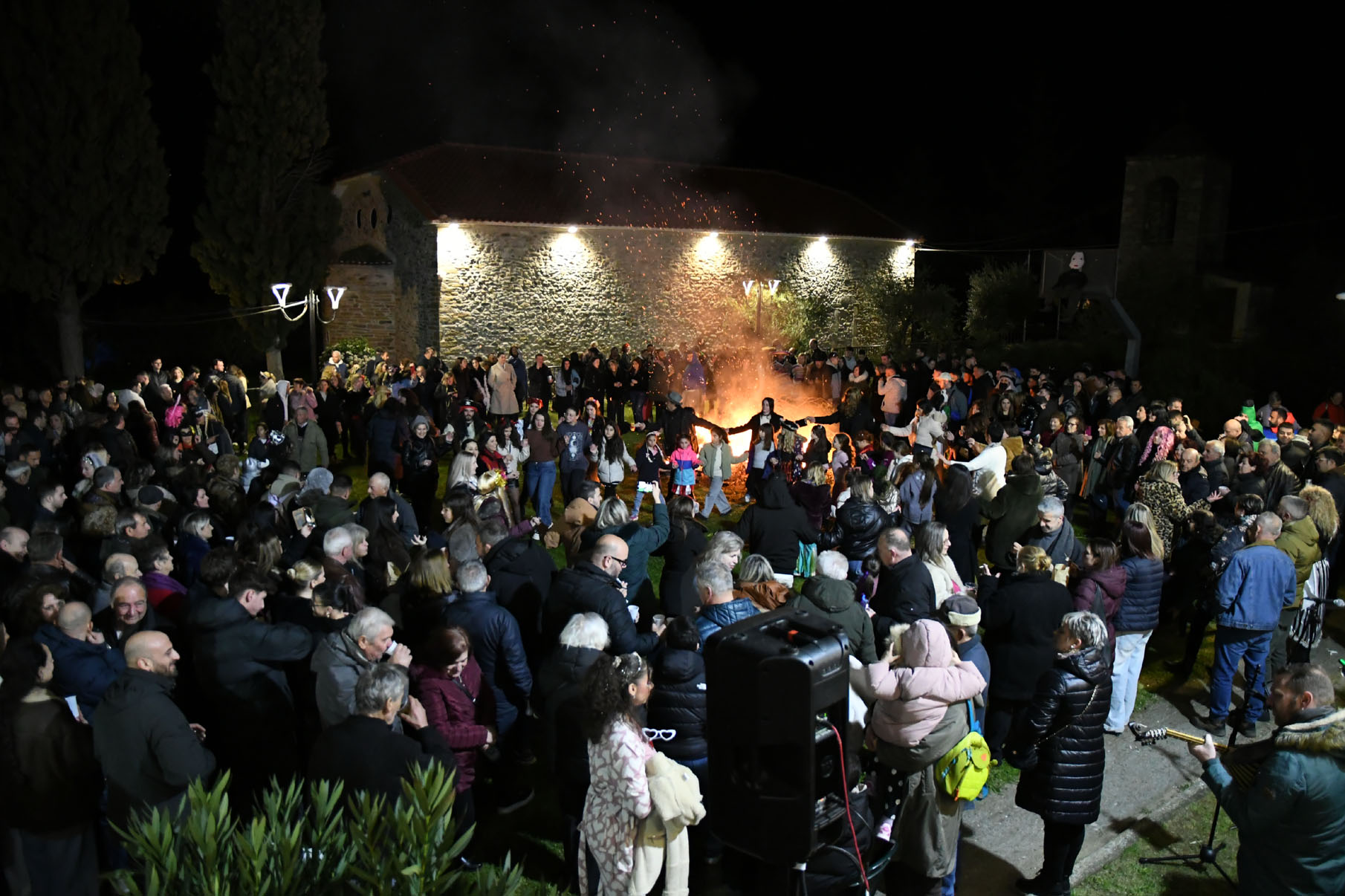 Άφθονο κρασί, ποτά, σουβλάκια, λουκάνικα υπήρχαν για όλους, και δίπλα στη μεγάλη φωτιά στήθηκε χορός υπό τους ήχους παραδοσιακής ορχήστρας αποτελούμενη από τον Μιχάλη Καραμούτη στο κλαρίνο, την Σοφία Ζαχαρή στο τραγούδι, τον Τρύφωνα Καρατζιώλη στο βιολί, τον Αντώνη Βούλγαρη στο λαούτο και τον Παναγιώτη Νάκο στα κρουστά.