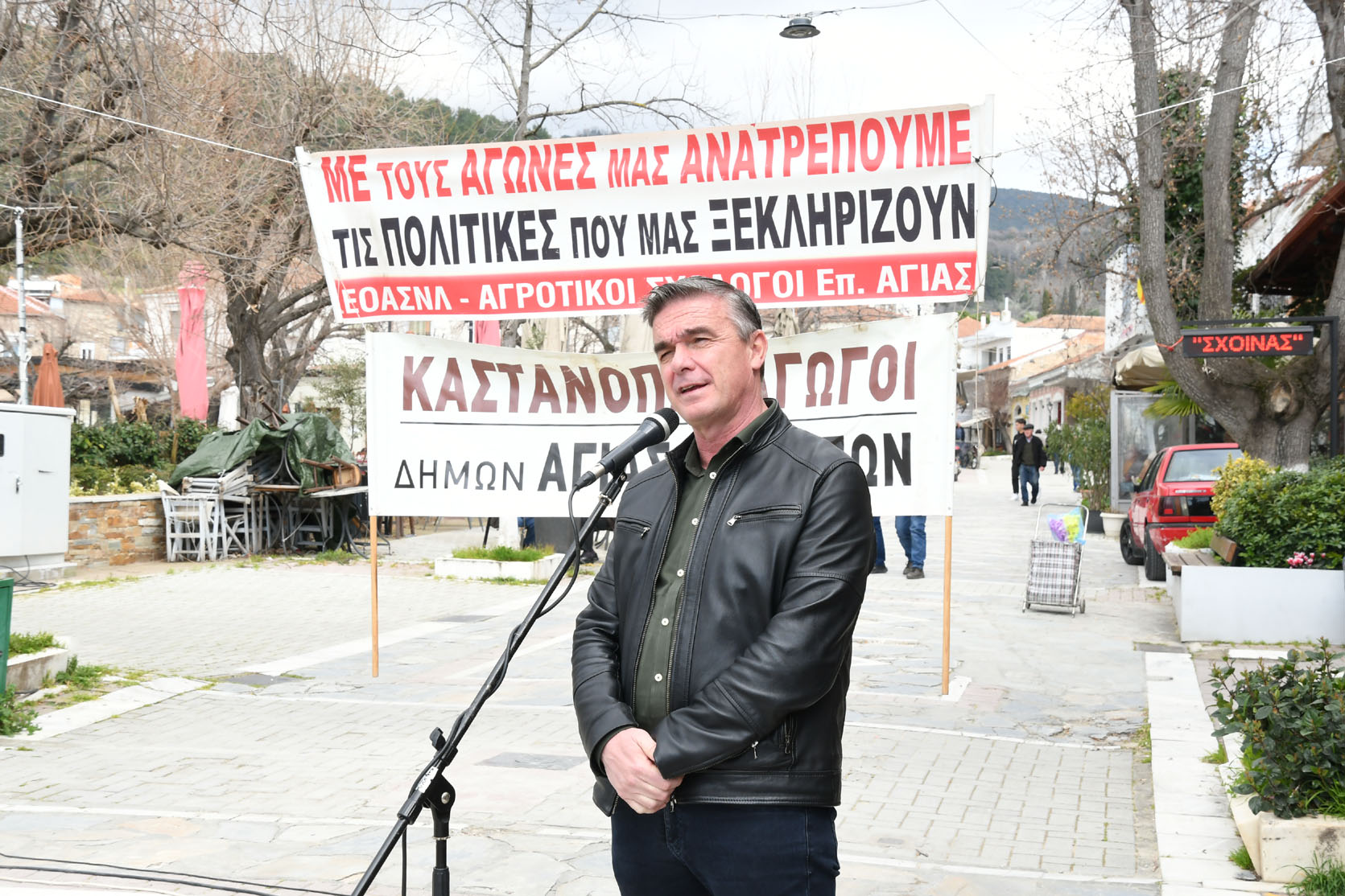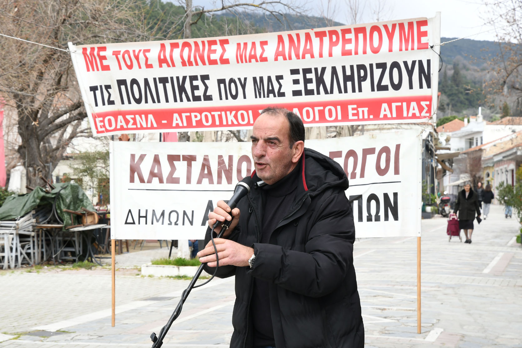 Τα τρακτέρ τους στην Κεντρική πλατεία της Αγιάς έβγαλαν για ακόμη μία φορά παραγωγοί της ευρύτερης περιοχής ζητώντας από την κυβέρνηση να ενταχθούν μήλα, κάστανα και αχλάδια, όπως συνέβη σε όλη την υπόλοιπη Ελλάδα πλην Θεσσαλίας, σε πρόγραμμα ad hoc, σε έκτακτο δηλαδή πρόγραμμα οικονομικής ενίσχυσης για ζημιές που δεν καλύπτονται πλήρως από τον κανονισμό του ΕΛΓΑ, και στην συγκεκριμένη περίπτωση για ζημιές που υπέστησαν σε προανθικό στάδιο τα δέντρα από τους ανοιξιάτικους παγετούς του 2025.