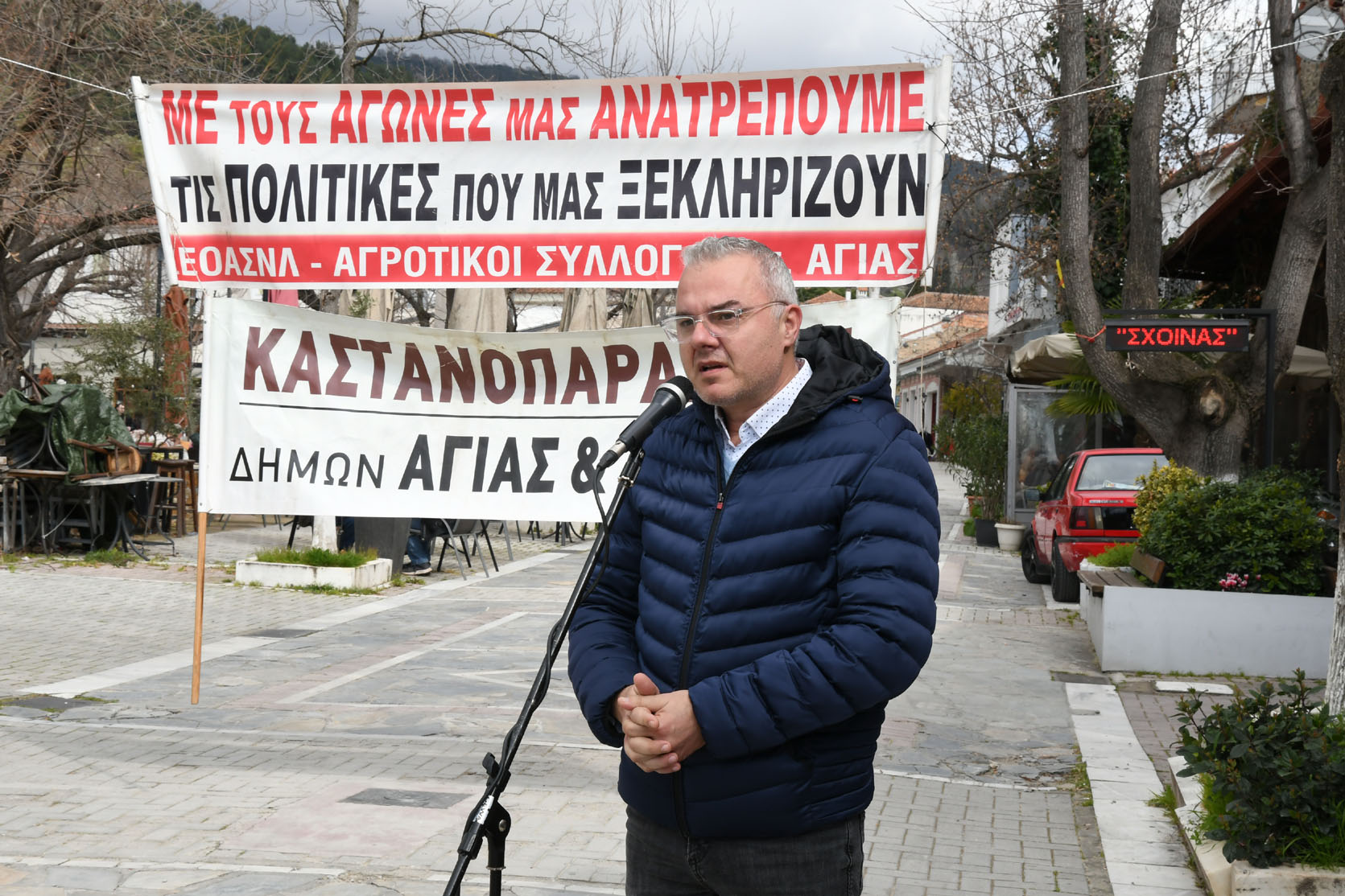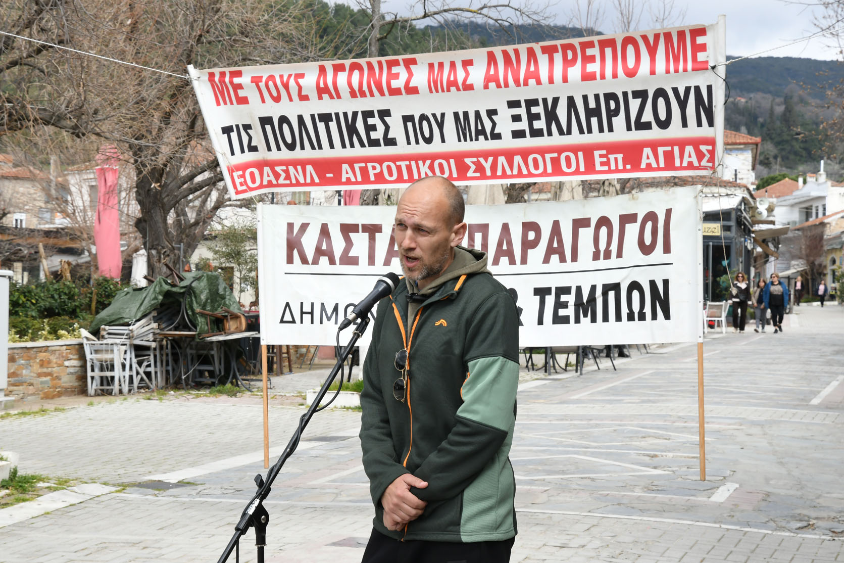 Χαιρετισμό υποστήριξης των αγροτών έκανε ο Δημήτρης Τσέτσιλας, θεματικός αντιπεριφερειάρχης Πρωτογενούς Τομέα και Αγροτικής Οικονομίας Περιφέρειας Θεσσαλίας, ο πρόεδρος του Δημοτικού Συμβουλίου Αγιάς Παντελής Χατζηρούφας και ο επικεφαλής της Λαϊκής Συσπείρωσης Αγιάς Θανάσης Παπαποστόλου. Μήνυμα στήριξης των αιτημάτων των αγροτών έστειλε ο πρόεδρος του Εμπορικού και Επιχειρηματικού Συλλόγου Αγιάς Αθανάσιος Χαύδας.