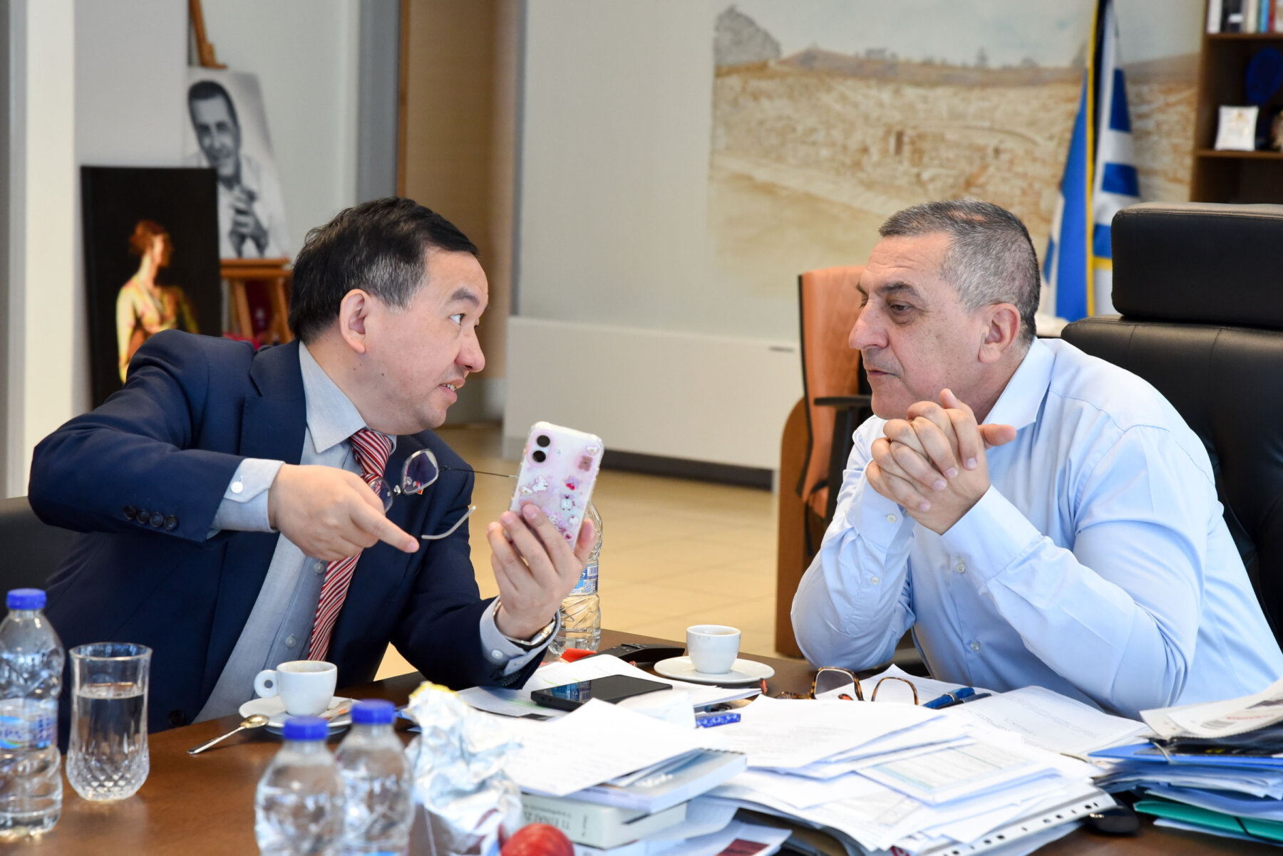 Ο Δημ. Κουρέτας ενημέρωσε τον Κινέζο πρέσβη ότι ήδη η Περιφέρεια Θεσσαλίας έχει πολλούς δεσμούς με την Κίνα και αναφέρθηκε εκτενώς στη συνεργασία που υπάρχει με την επαρχία Jiangsu της Κίνας μετά την υπογραφή του Μνημονίου Συνεργασίας που υπογράφηκε με τον πρόεδρο του Ραδιοτηλεοπτικού Φορέα της Jiangsu πέρυσι τον Ιούνιο σε εκδήλωση στο Μουσείο Κυκλαδικής Τέχνης στην Αθήνα. Του εξήγησε ότι ο στόχος είναι η οικοδόμηση μιας στρατηγικής συνεργασίας που κτίστηκε όχι με όρους διπλωματικού πρωτοκόλλου, αλλά με κοινό όραμα και πρακτικούς στόχους που αφορούν στους τομείς του τουρισμού, της καινοτομίας, του πολιτισμού και της τεχνολογίας.