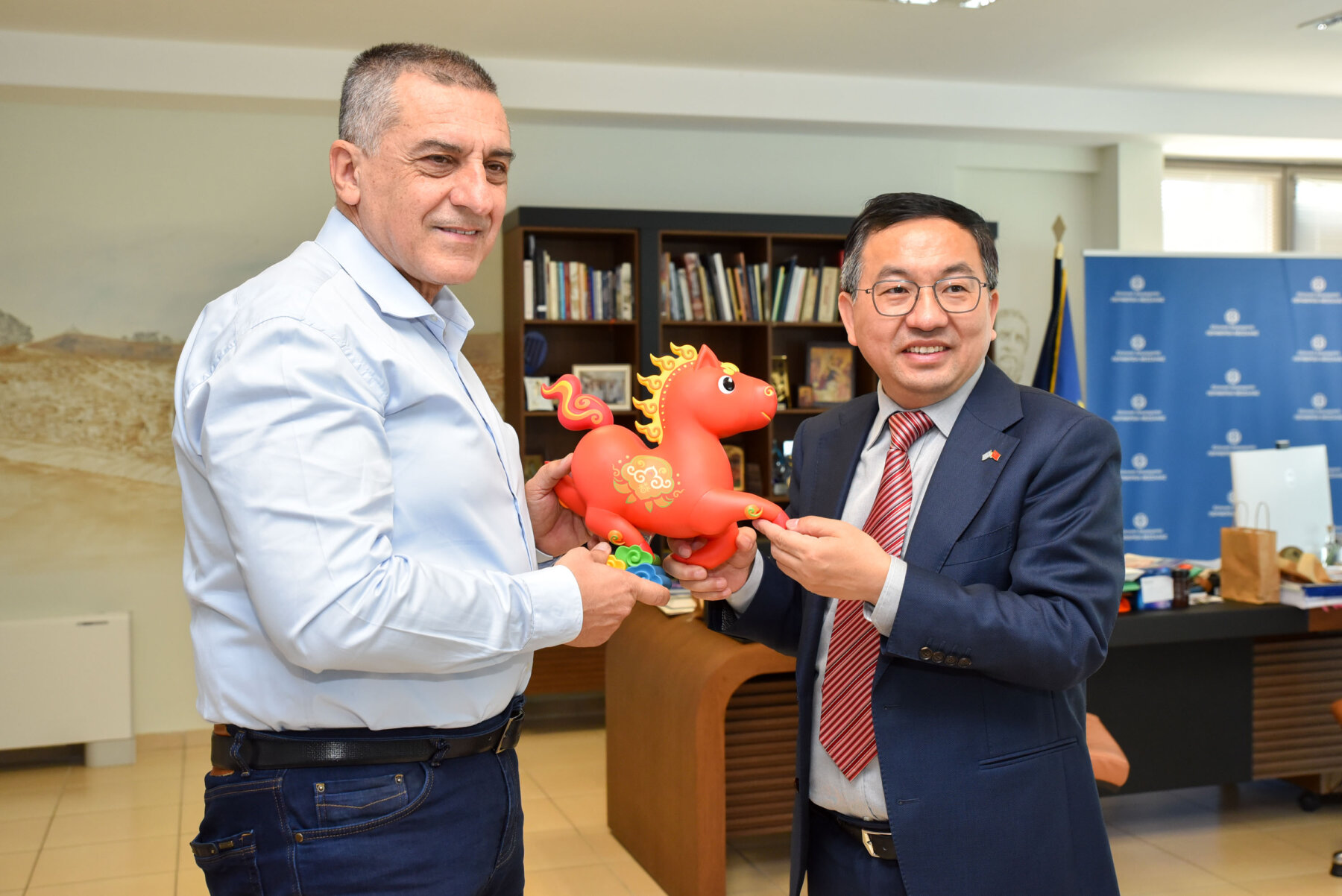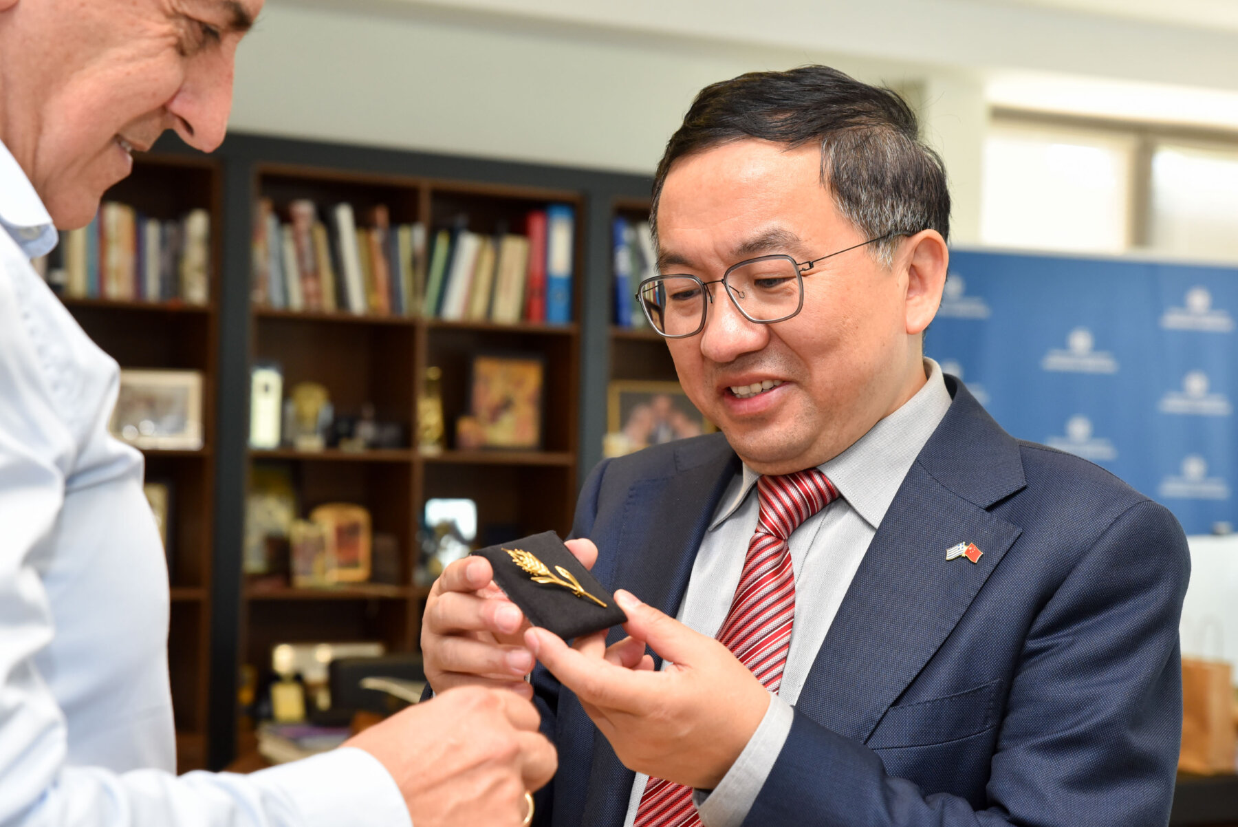 Η συνάντηση ολοκληρώθηκε με την ανταλλαγή δώρων. Συγκεκριμένα, ο κ. Κουρέτας χάρισε στον πρέσβη της Κίνας μια καρφίτσα σε σχήμα στάχυ που αποτελεί το σύμβολο της Θεσσαλίας και εκείνος με τη σειρά του ανταπέδωσε ένα άλογο, καθώς φέτος στην Κίνα είναι η χρονιά του αλόγου, και ένα κινέζικο ημερολόγιο.