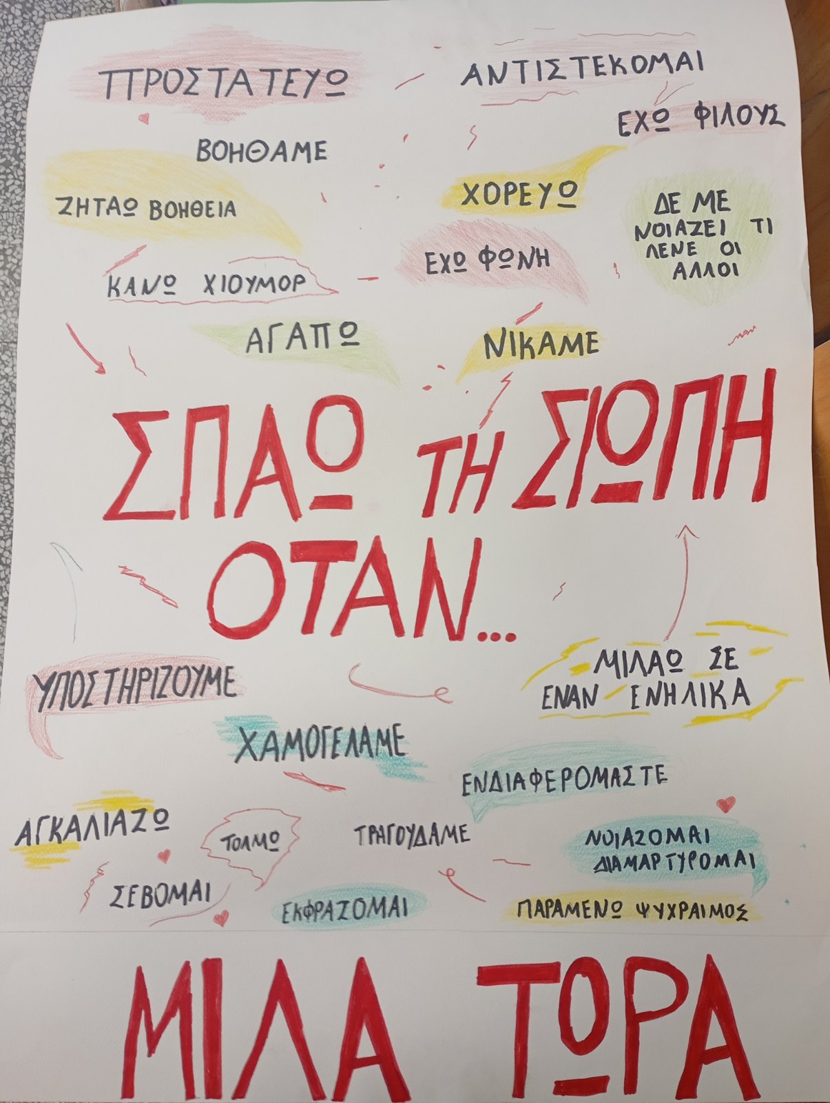 Με λόγια απλά αλλά ουσιαστικά, τα παιδιά υπενθυμίζουν ότι το σχολείο πρέπει να είναι ένας χώρος ασφάλειας, χαράς και φιλίας για όλους. Το μήνυμά τους απευθύνεται όχι μόνο στη σχολική κοινότητα, αλλά και σε ολόκληρη την τοπική κοινωνία, καλώντας όλους να συμβάλουν στη δημιουργία ενός σχολικού περιβάλλοντος χωρίς βία και αποκλεισμούς.