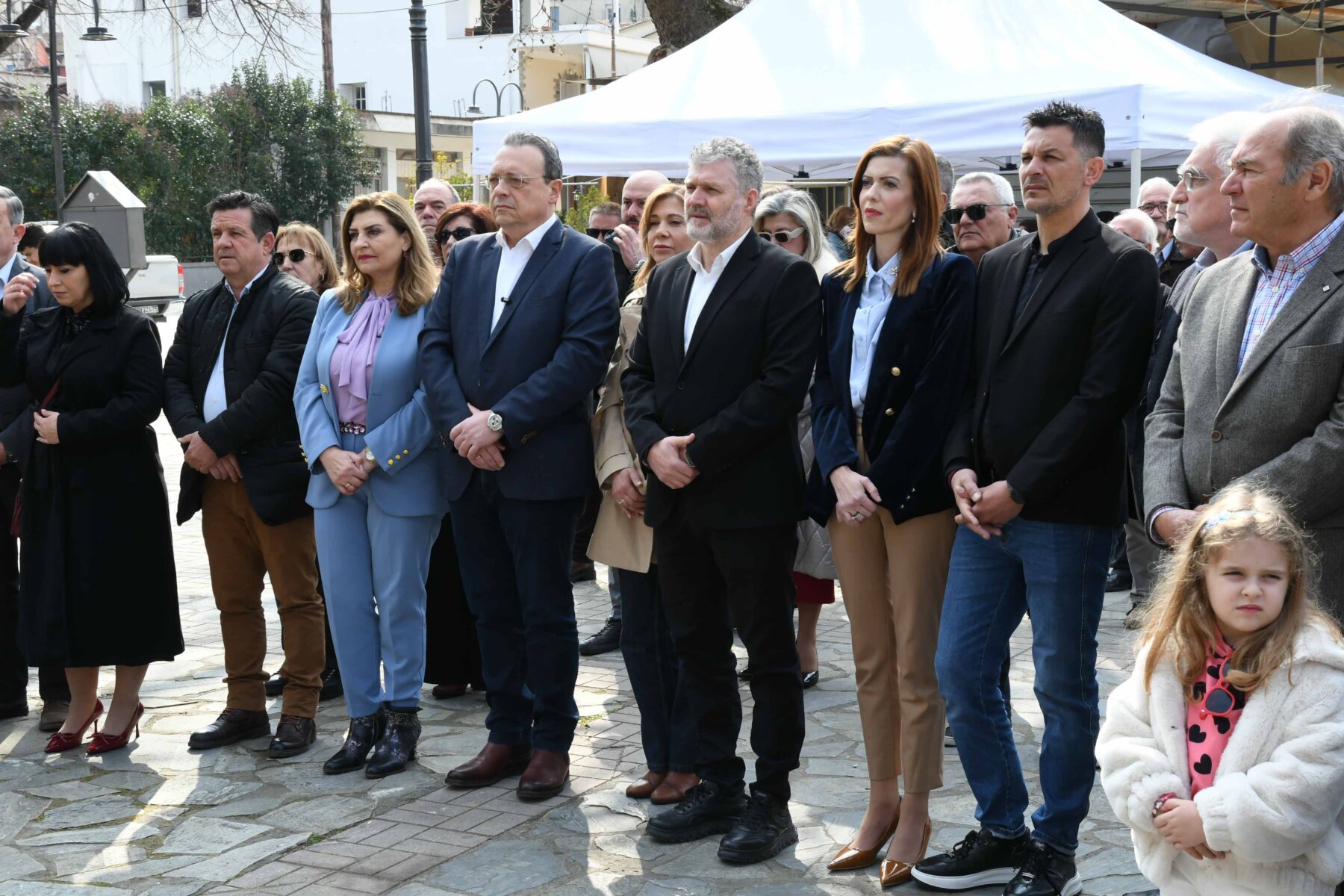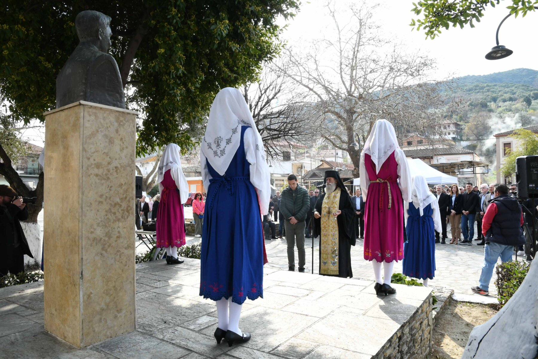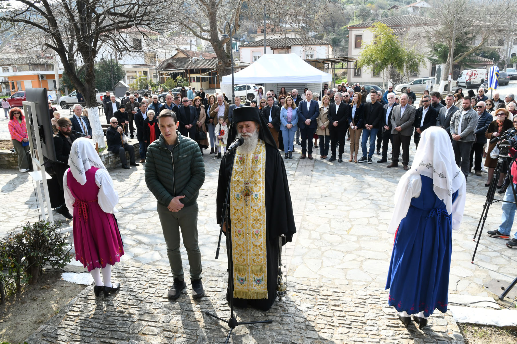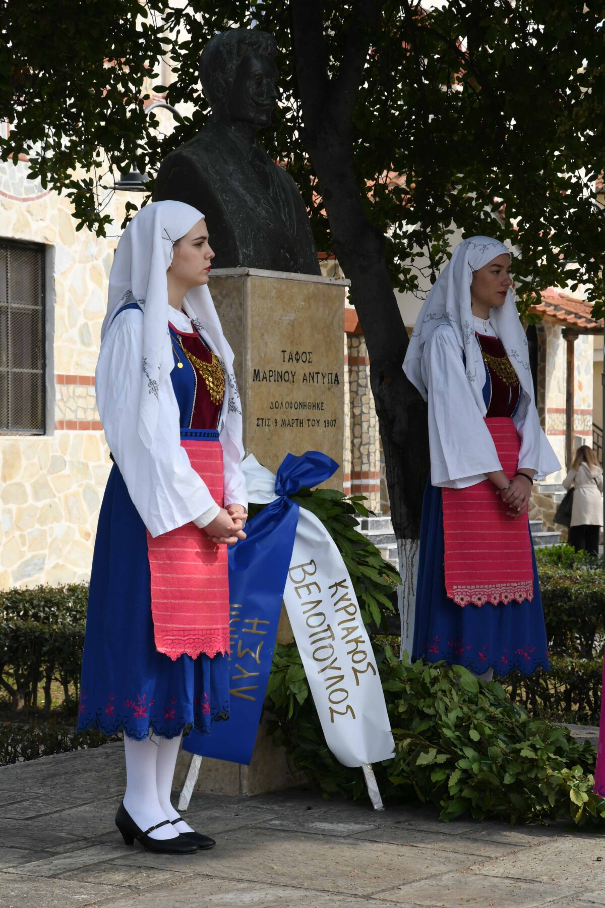 Προηγουμένως εψάλη επιμνημόσυνη δέηση από τον ιερέα π. Νεόφυτο, κρατήθηκε ενός λεπτού σιγή, και κατατέθηκαν στεφάνια από τον κ. Φάμελλο, την κ. Λιακούλη, τον Τομεάρχη Αγροτικής Ανάπτυξης και Τροφίμων της «Ελληνικής Λύσης – Κυριάκος Βελόπουλος», Καθηγητή Δενδροκομίας και πρόεδρο του Τμήματος Γεωπονίας – Αγροτεχνολογίας του Πανεπιστημίου Θεσσαλίας, κ. Παπαχατζή Αλέξανδρο, την αντιπεριφερειάρχη Εθελοντισμού και Πρόνοιας, Ανδριάνα Κομήτσα – Μπανταλού, τον κ. Γκουντάρα, την κ. Κρυσταλλία Μακαντάση – Γκατζώνα για την Εθνική Αντίσταση, την κ. Παλάκα, από τον πρόεδρο του Πολιτιστικού Μορφωτικού Συλλόγου Ομολίου «Μαρίνος Αντύπας», Παναγιώτη Αποστόλου, τον πρόεδρο του τοπικού Δασικού Συνεταιρισμού, Γεώργιο Εμμανουήλ, τον αντιπρόεδρο του Νέου Αγροτικού Συνεταιρισμού Ομολίου, Κωνσταντίνο Μυλωνά, και από την πρόεδρο του Συλλόγου Φίλων Μουσείου Εθνικής Αντίστασης Λάρισας, Αικατερίνη Εμμανουήλ.