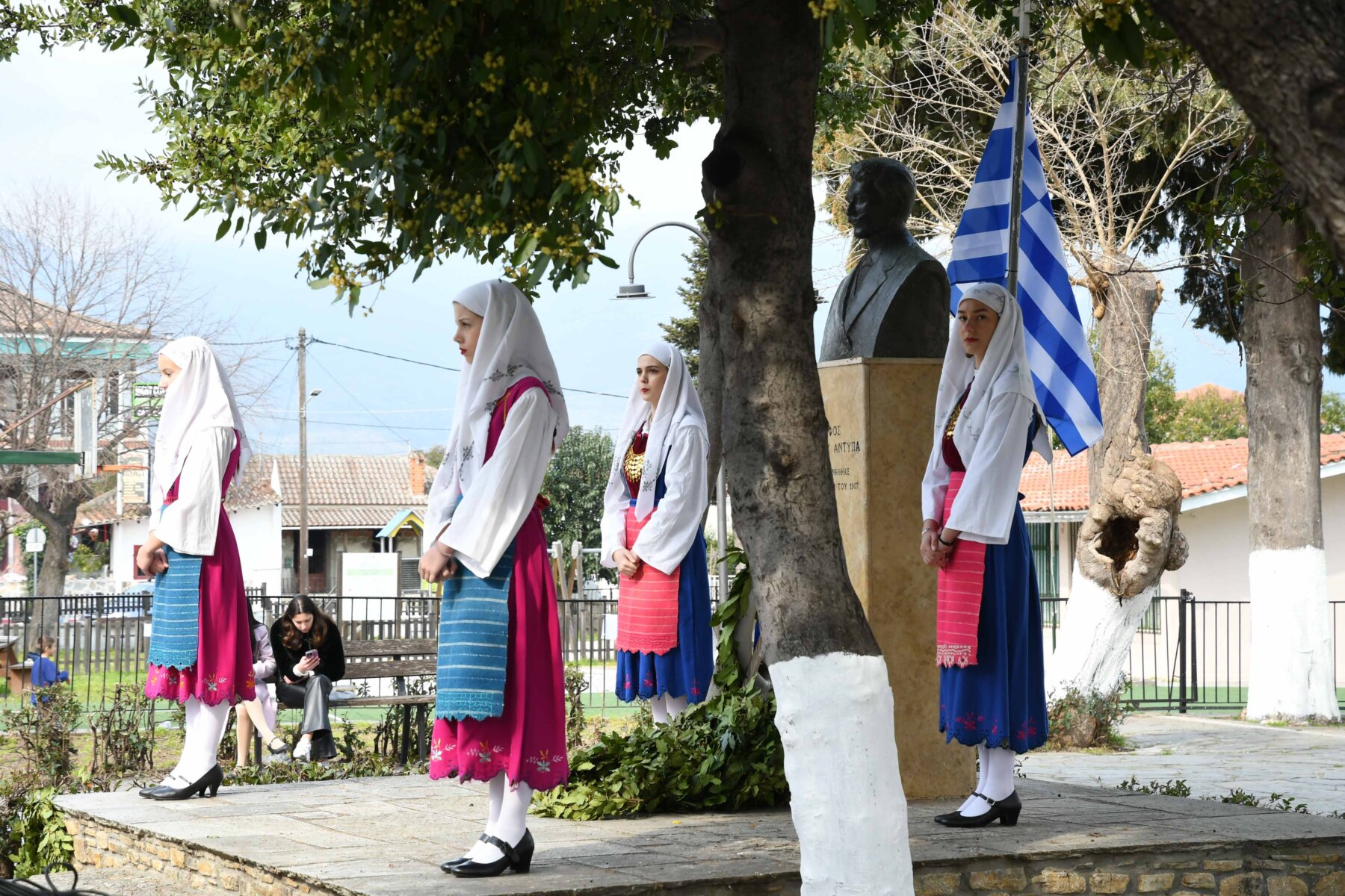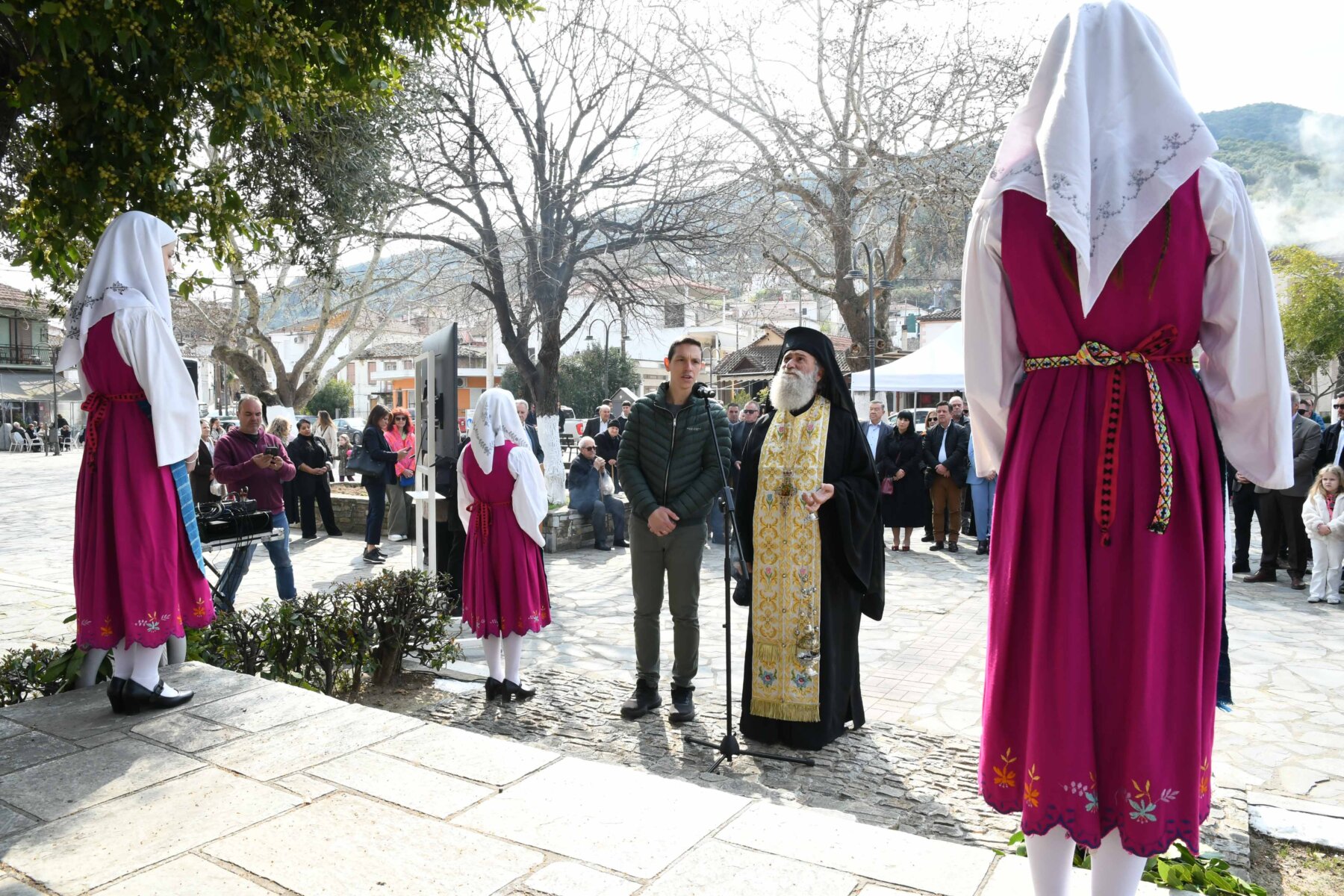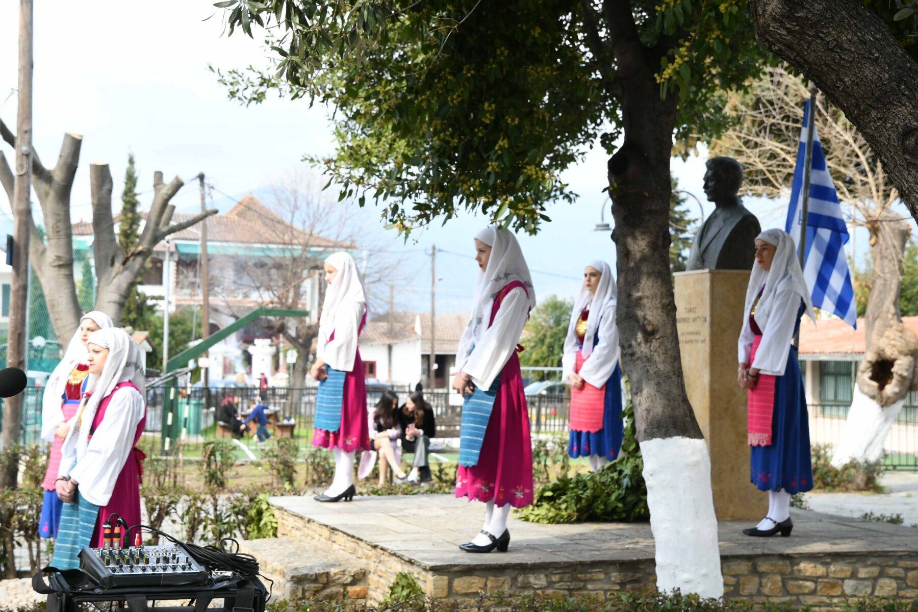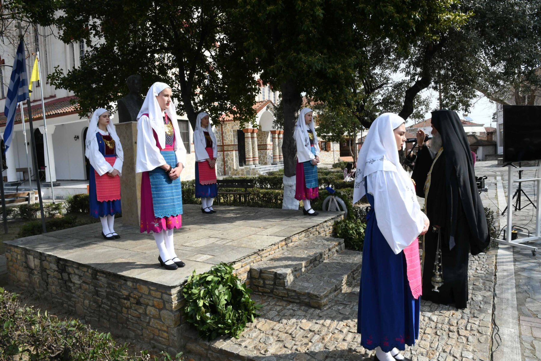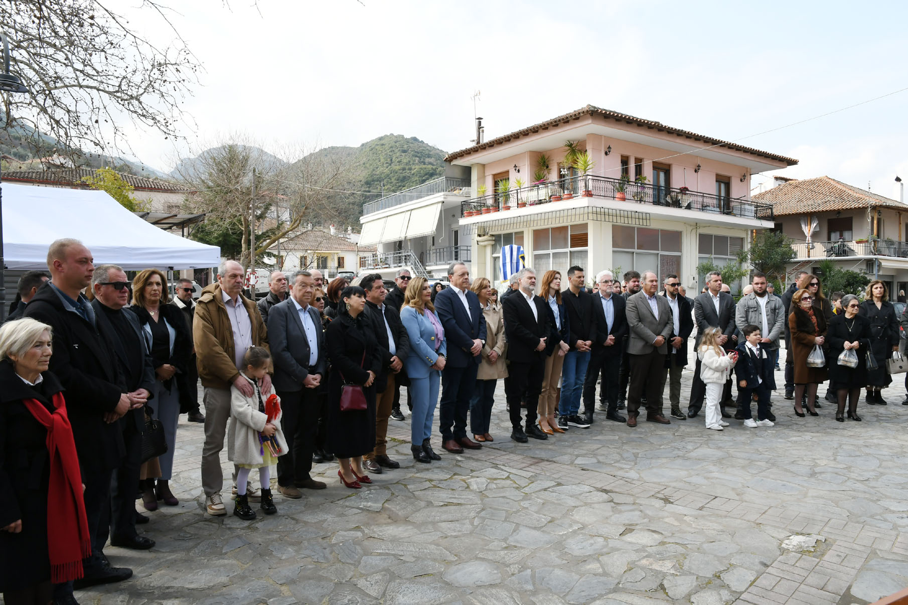 Προηγουμένως εψάλη επιμνημόσυνη δέηση από τον ιερέα π. Νεόφυτο, κρατήθηκε ενός λεπτού σιγή, και κατατέθηκαν στεφάνια από τον κ. Φάμελλο, την κ. Λιακούλη, τον Τομεάρχη Αγροτικής Ανάπτυξης και Τροφίμων της «Ελληνικής Λύσης – Κυριάκος Βελόπουλος», Καθηγητή Δενδροκομίας και πρόεδρο του Τμήματος Γεωπονίας – Αγροτεχνολογίας του Πανεπιστημίου Θεσσαλίας, κ. Παπαχατζή Αλέξανδρο, την αντιπεριφερειάρχη Εθελοντισμού και Πρόνοιας, Ανδριάνα Κομήτσα – Μπανταλού, τον κ. Γκουντάρα, την κ. Κρυσταλλία Μακαντάση – Γκατζώνα για την Εθνική Αντίσταση, την κ. Παλάκα, από τον πρόεδρο του Πολιτιστικού Μορφωτικού Συλλόγου Ομολίου «Μαρίνος Αντύπας», Παναγιώτη Αποστόλου, τον πρόεδρο του τοπικού Δασικού Συνεταιρισμού, Γεώργιο Εμμανουήλ, τον αντιπρόεδρο του Νέου Αγροτικού Συνεταιρισμού Ομολίου, Κωνσταντίνο Μυλωνά, και από την πρόεδρο του Συλλόγου Φίλων Μουσείου Εθνικής Αντίστασης Λάρισας, Αικατερίνη Εμμανουήλ.