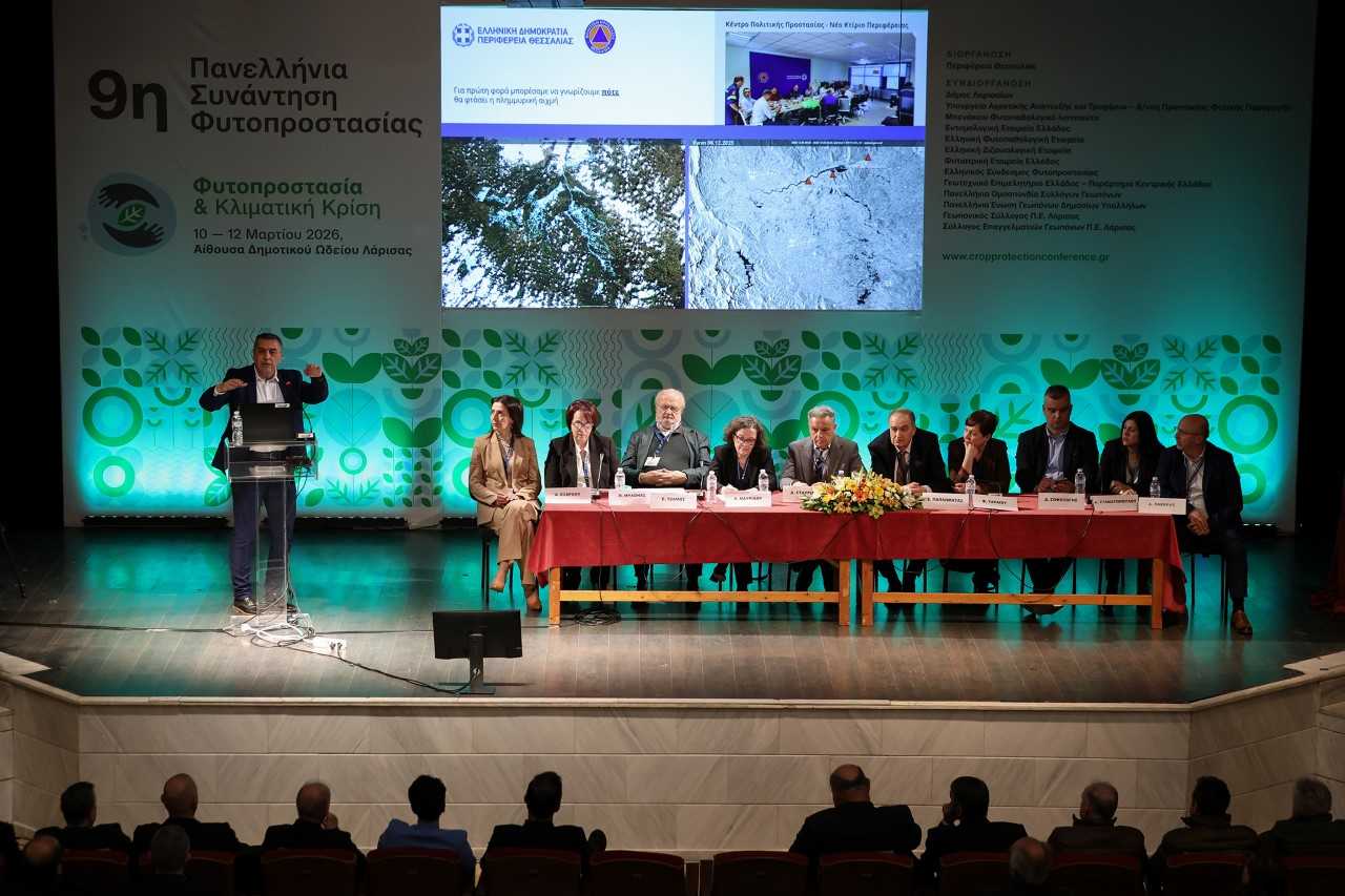 Τη φιλοσοφία της Περιφέρειας Θεσσαλίας για την προστασία της αγροτικής παραγωγής και των υποδομών απέναντι στις προκλήσεις της κλιματικής αλλαγής ανέπτυξε ο Περιφερειάρχης Θεσσαλίας Δημήτρης Κουρέτας, ανοίγοντας τις εργασίες της 3ήμερης Πανελλαδικής Συνάντησης Φυτοπροστασίας στο Δημοτικό Ωδείο Λάρισας.