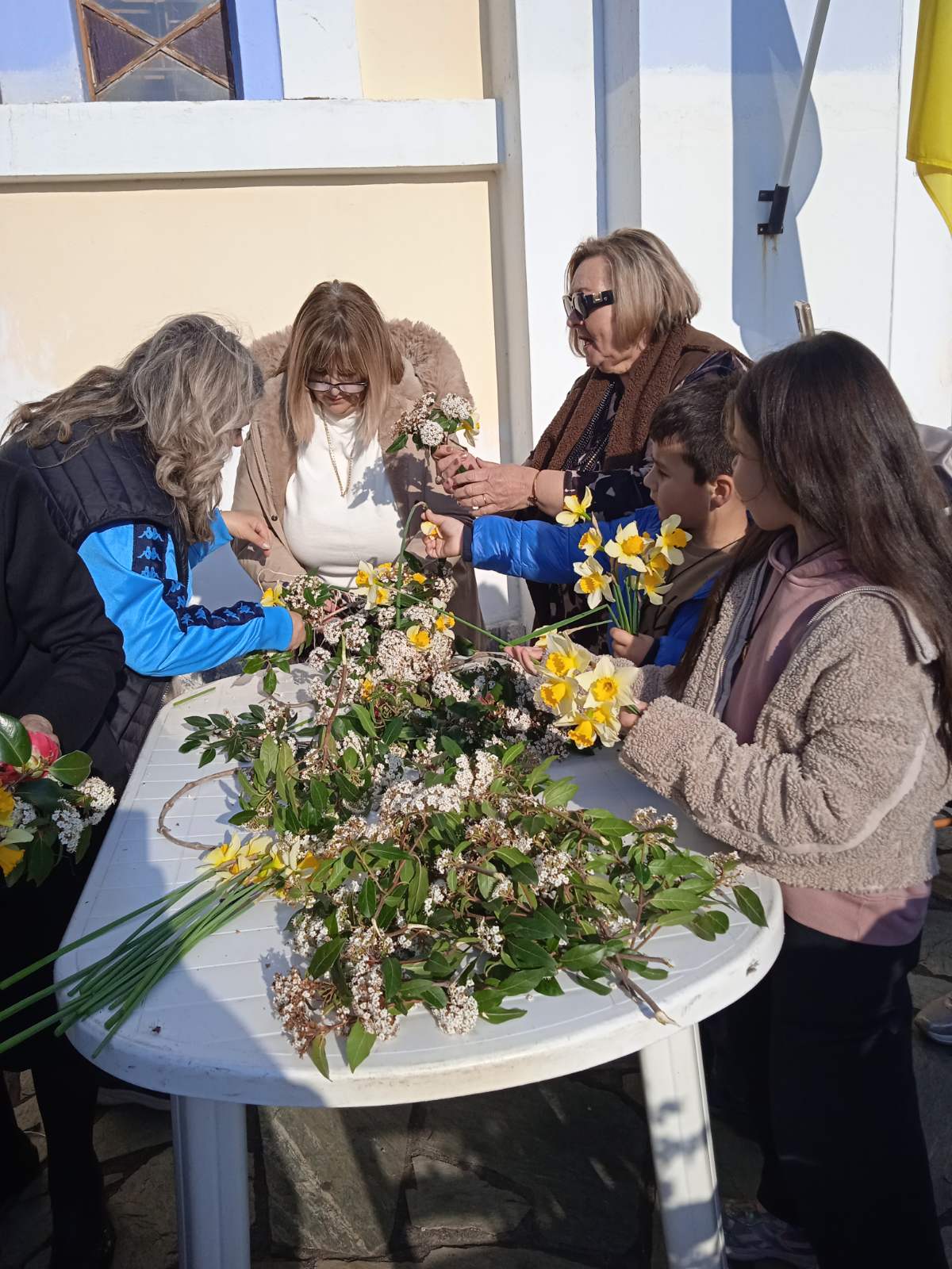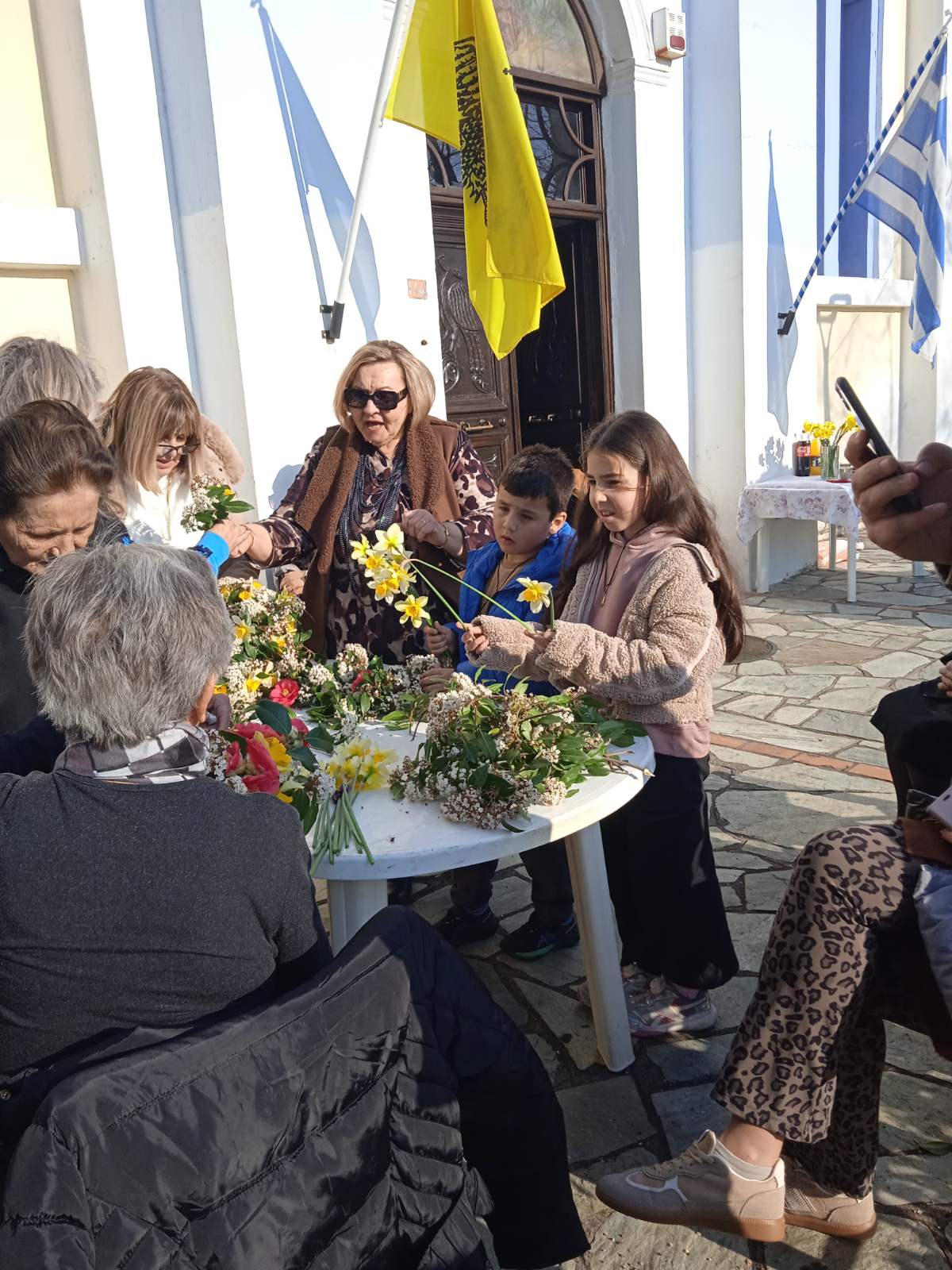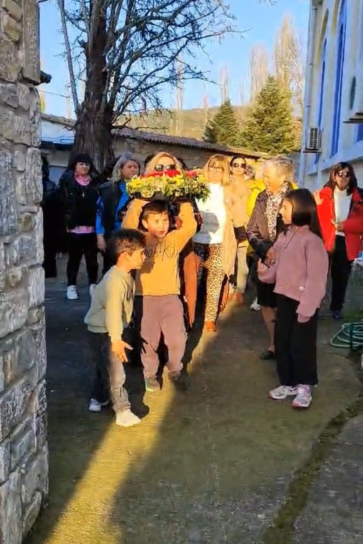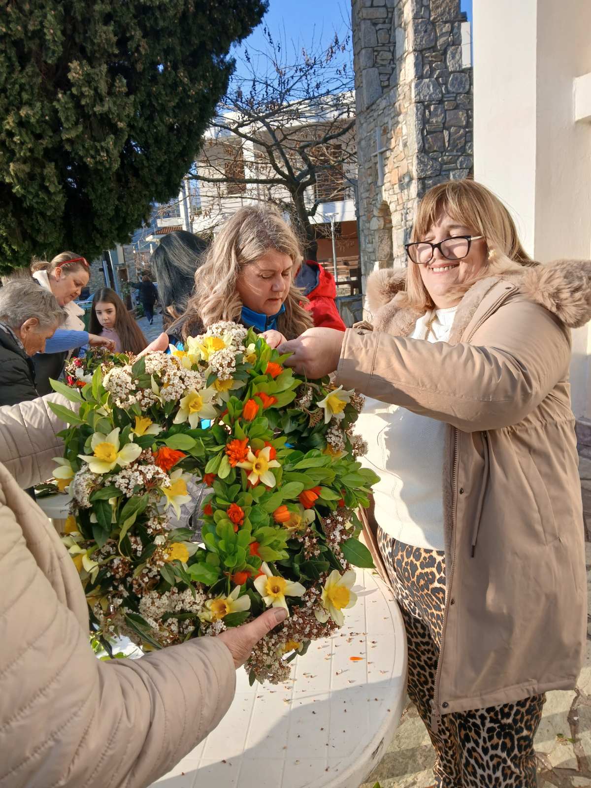 Αφού πρώτα μάζεψαν από το Μαυροβούνι, στους πρόποδες του οποίου βρίσκεται το χωριό, εκατοντάδες λουλούδια, γυναίκες κάθε ηλικίας συγκεντρώθηκαν στην πλατεία και έφτιαξαν μ’ αυτά τέσσερις Σταυρούς, έναν για κάθε εκκλησία της ενορίας τους, χρησιμοποιώντας απλά βέργες και νήμα.