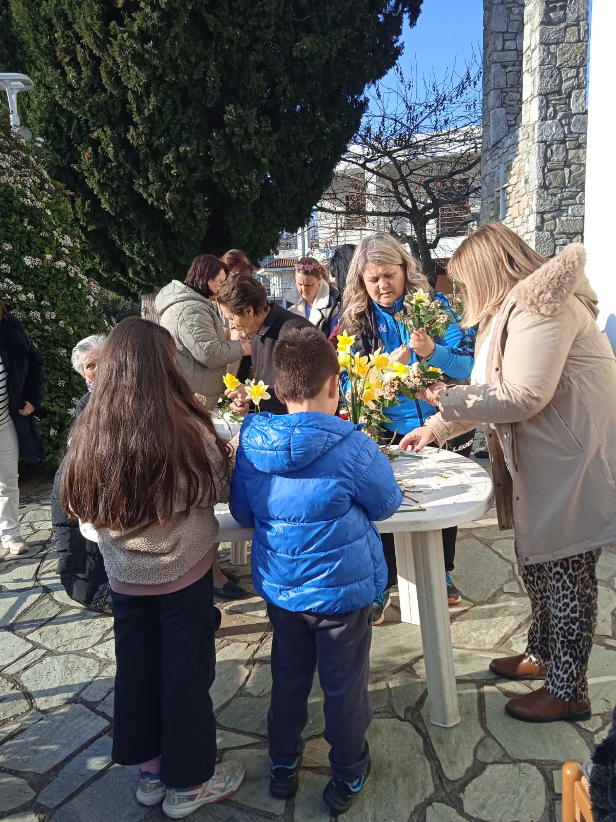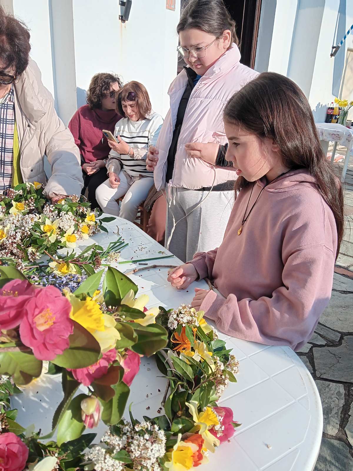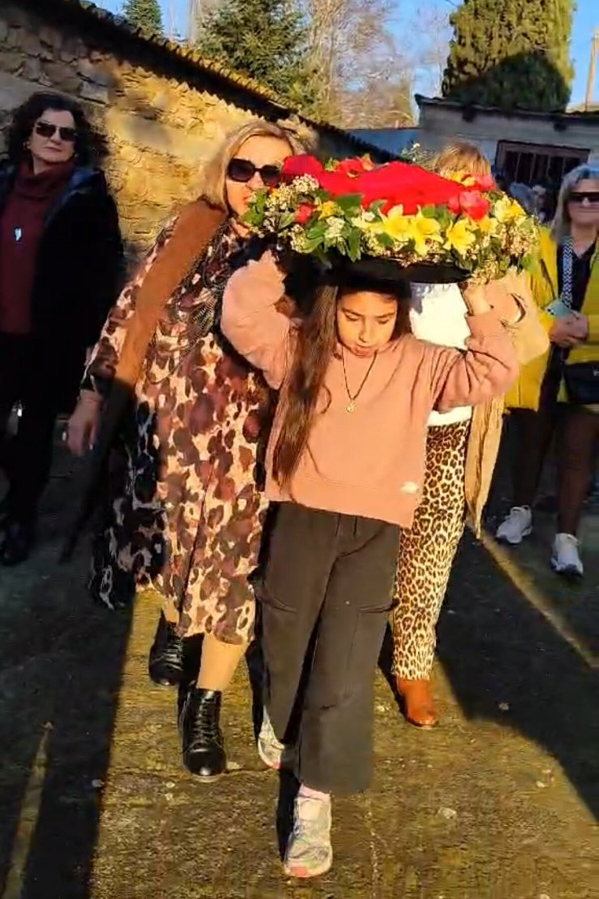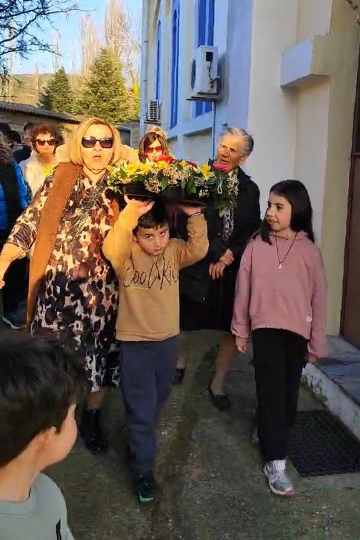 Αφού πρώτα μάζεψαν από το Μαυροβούνι, στους πρόποδες του οποίου βρίσκεται το χωριό, εκατοντάδες λουλούδια, γυναίκες κάθε ηλικίας συγκεντρώθηκαν στην πλατεία και έφτιαξαν μ’ αυτά τέσσερις Σταυρούς, έναν για κάθε εκκλησία της ενορίας τους, χρησιμοποιώντας απλά βέργες και νήμα.