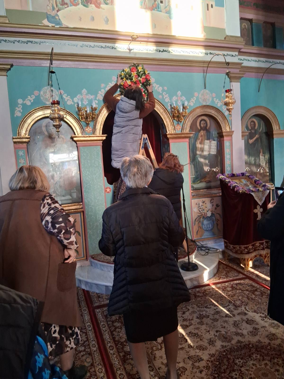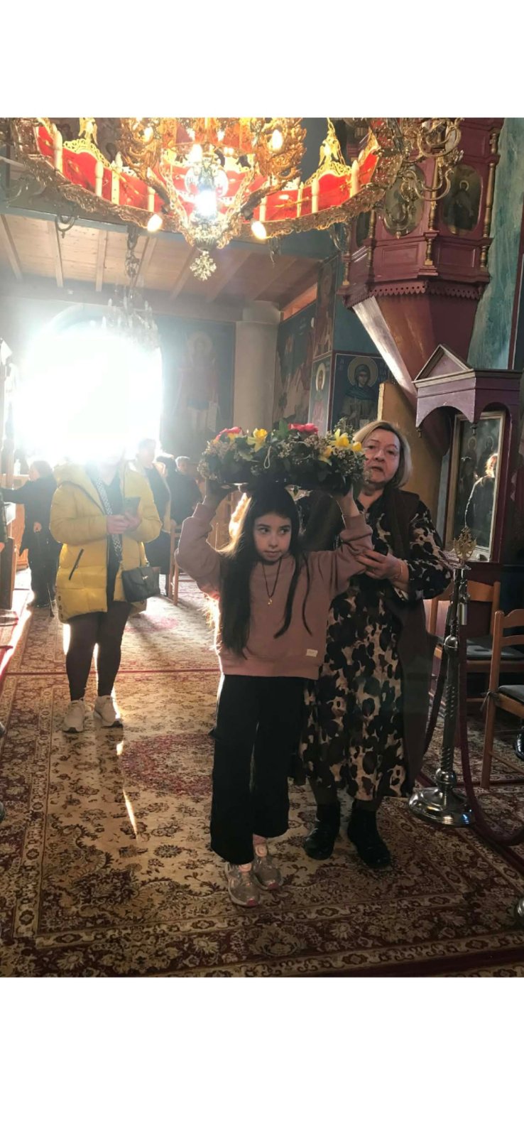 Ολοκληρώνοντάς τους, τους τοποθέτησαν σε ταψί με νερό, και όλες μαζί, έχοντας μπροστά μικρές κοπέλες να τον κρατάνε με τα δυο τους χέρια πάνω στο κεφάλι τους, άφησαν πρώτα έναν στον πολιούχο Άγιο Δημήτριο, και μετά πέρασαν και άφησαν και στους υπόλοιπους ναούς, σε κάθε έναν από τους οποίους ακολούθησαν και ένα πολύ όμορφο τελετουργικό.