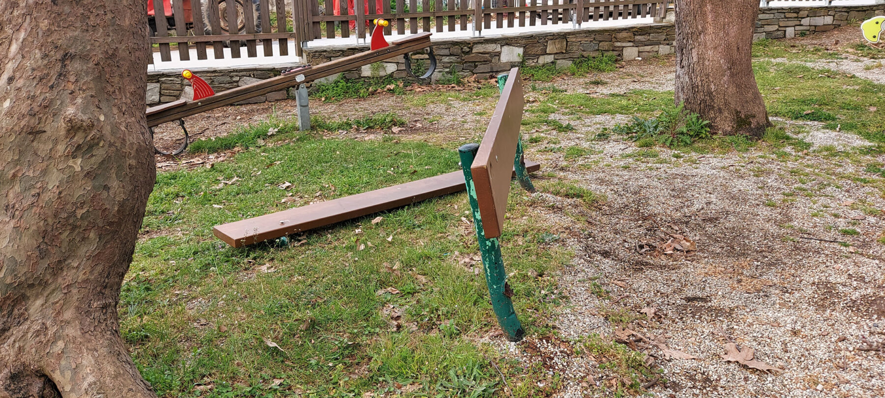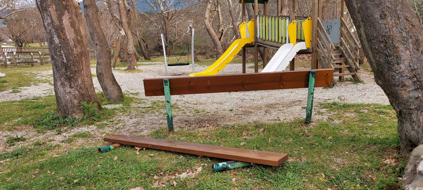 Έφηβοι όλο ζωντάνια και ενέργεια… Ενέργεια που όμως την εξωτερικεύουν λανθασμένα μερικές φορές… Όπως εδώ λόγου χάρη, στην πολύ όμορφη παιδική χαρά του Συνοικισμού στην Αγιά, λίγο πιο πάνω από το Γυμνάσιο της κωμόπολης… Φανταζόμαστε ανάλογους βανδαλισμούς, έτσι για την πλάκα τους, δεν κάνουν στα σπίτια τους… Εκεί φωνάζουν και μαλώνουν ο μπαμπάς και η μαμά…