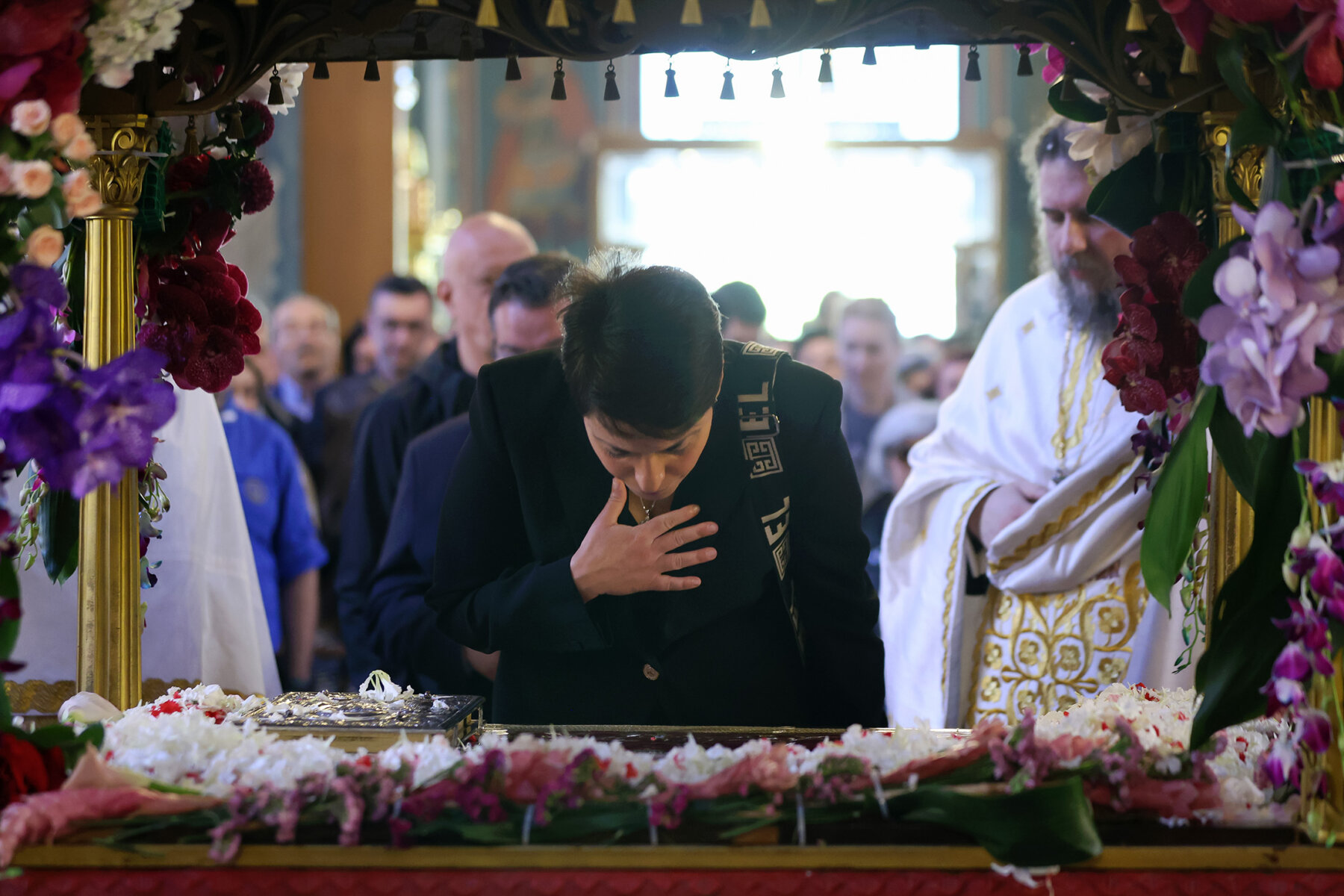 Παρακολούθησαν την Ακολουθία της Αποκαθήλωσης και στη συνέχεια προσκύνησαν τον Επιτάφιο. Κατά την παρουσία τους στον ναό, αντάλλαξαν ευχές για Καλή Ανάσταση με τους ιερείς και τους πιστούς.