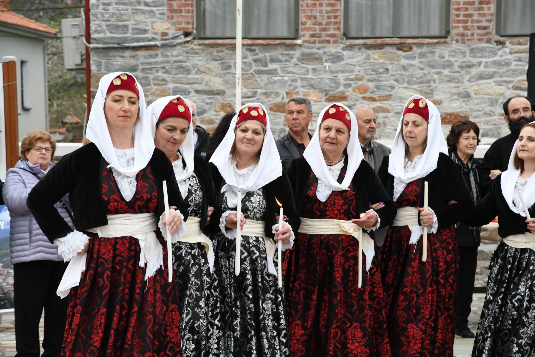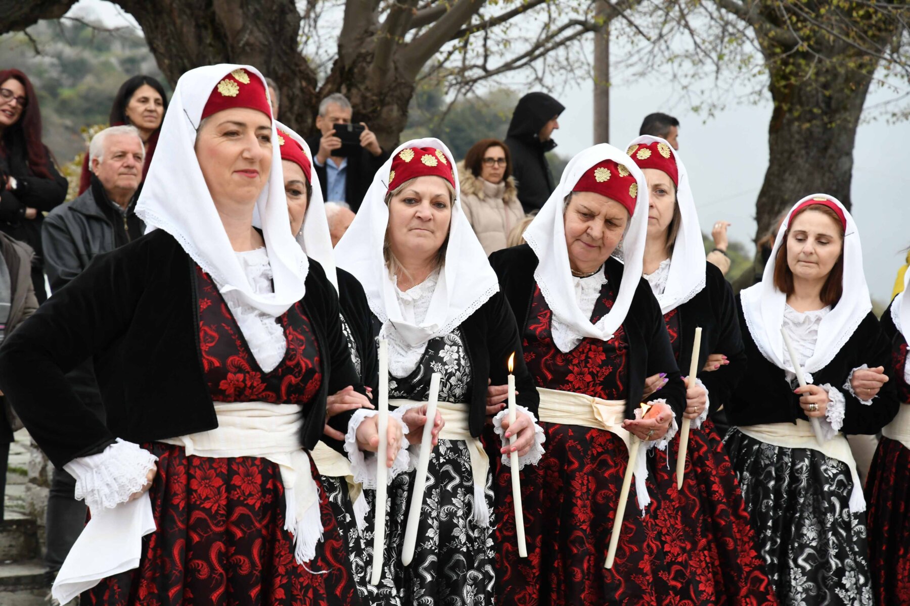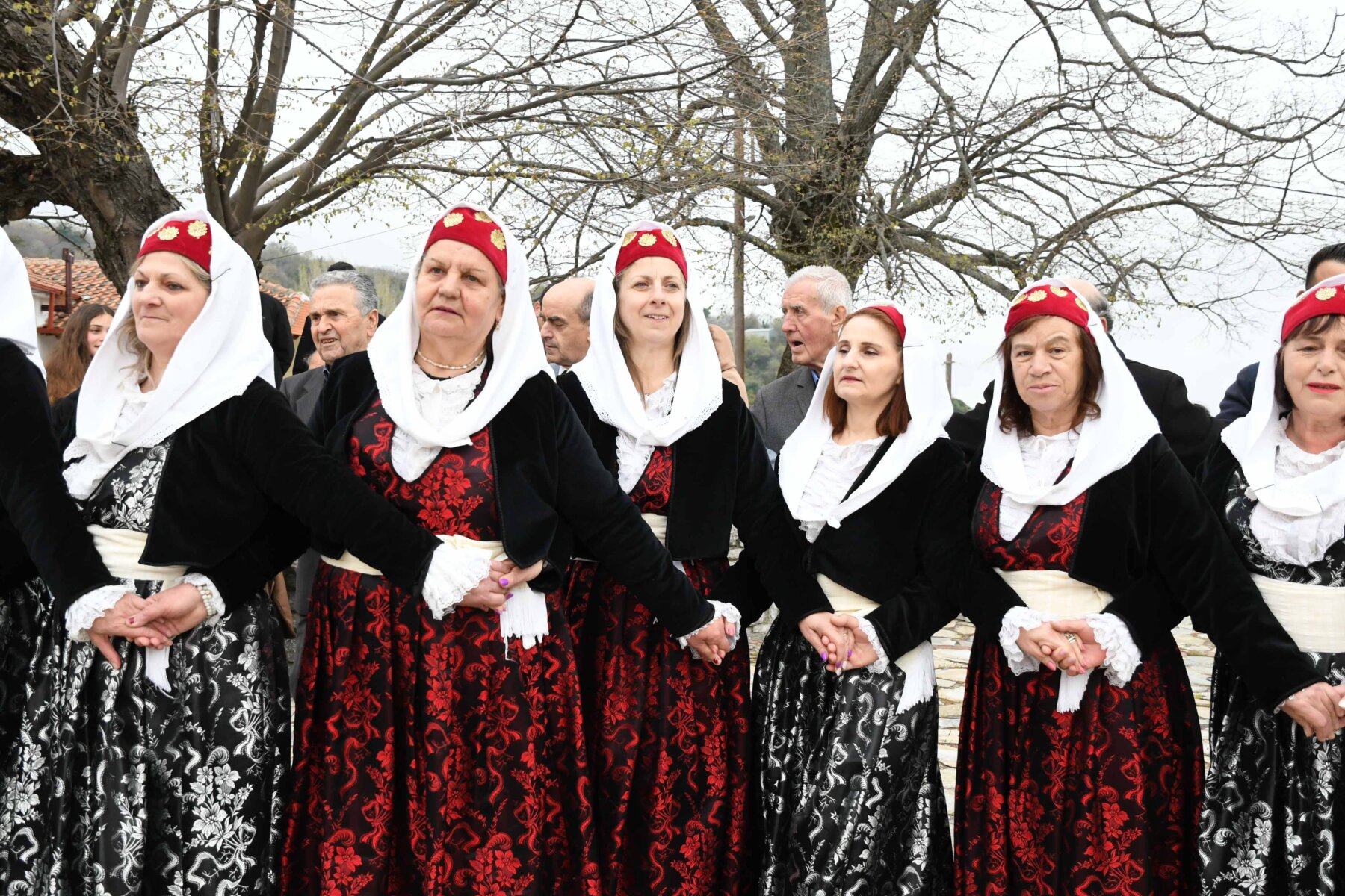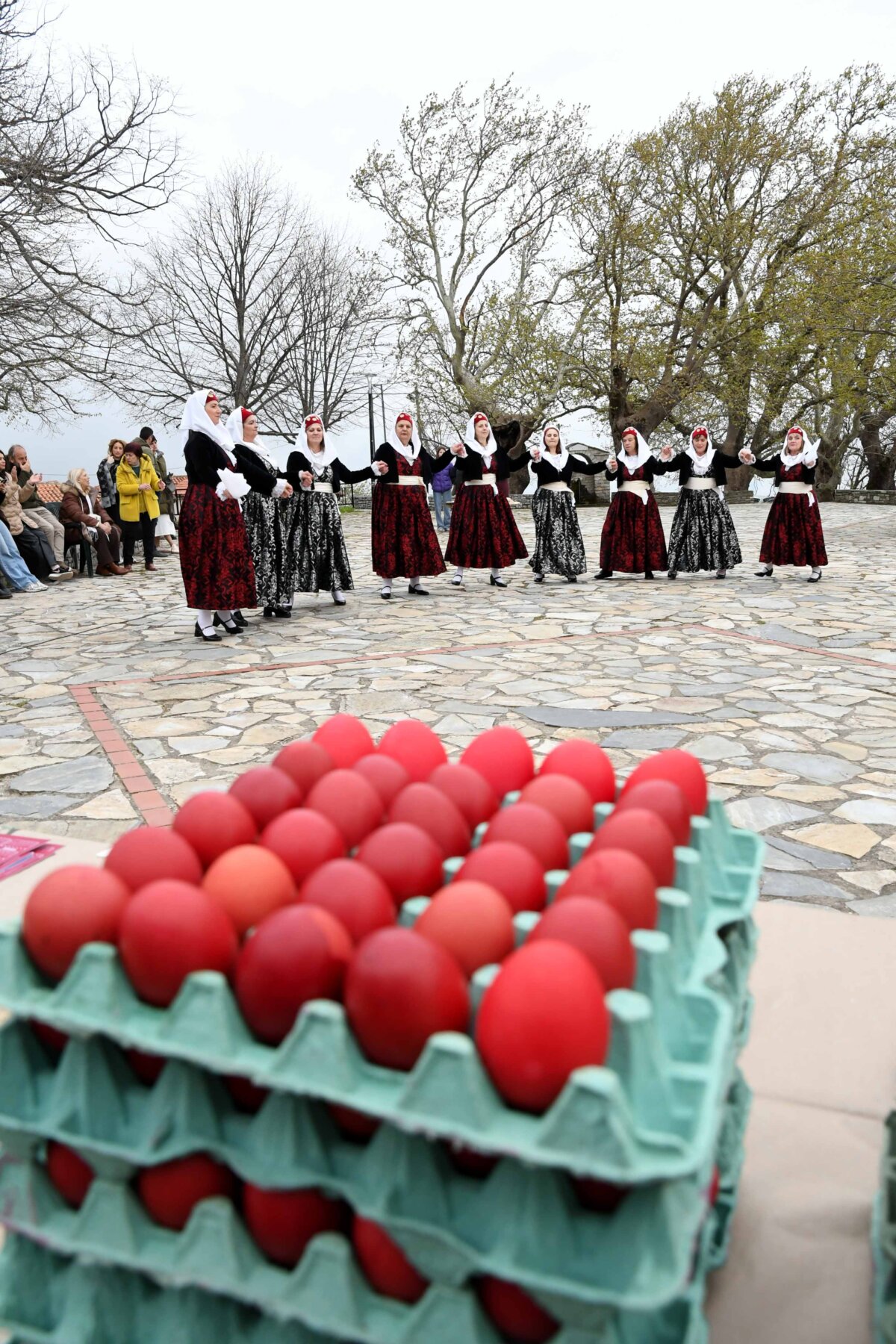Σε δύο σειρές, μπροστά οι γυναίκες και πίσω οι άνδρες, ντόπιοι και επισκέπτες, με τους γηραιότερους να προπορεύονται, τραγούδησαν χωρίς συνοδεία μουσικών οργάνων με μοναδικό και ιδιαίτερο τρόπο «Σημαίνει ο Θεός, σημαίνει η Γη, σημαίνουν τα Ουράνια…», «Ήλιε μ’, γιατί άργησες να βγεις κι αργείς να βασιλέψεις…», χόρεψαν τον παραδοσιακό με σταυρωτά τα χέρια χορό, ενώ σε όλους μοιράστηκαν κόκκινο αυγό, πασχαλινό κουλούρι, μπάτζος και κρασί. Του χορού προηγήθηκε ο αναστάσιμος εσπερινός από τον αρχιερατικό επίτροπο της Αρχιερατικής Περιφέρειας Αγιάς, πρωτοπρεσβύτερο π. Αθανάσιο Μακρή, και τον ιερέα π. Παναγιώτη Τσιλιμίγκα.