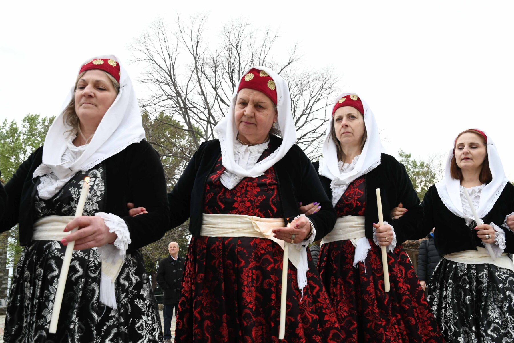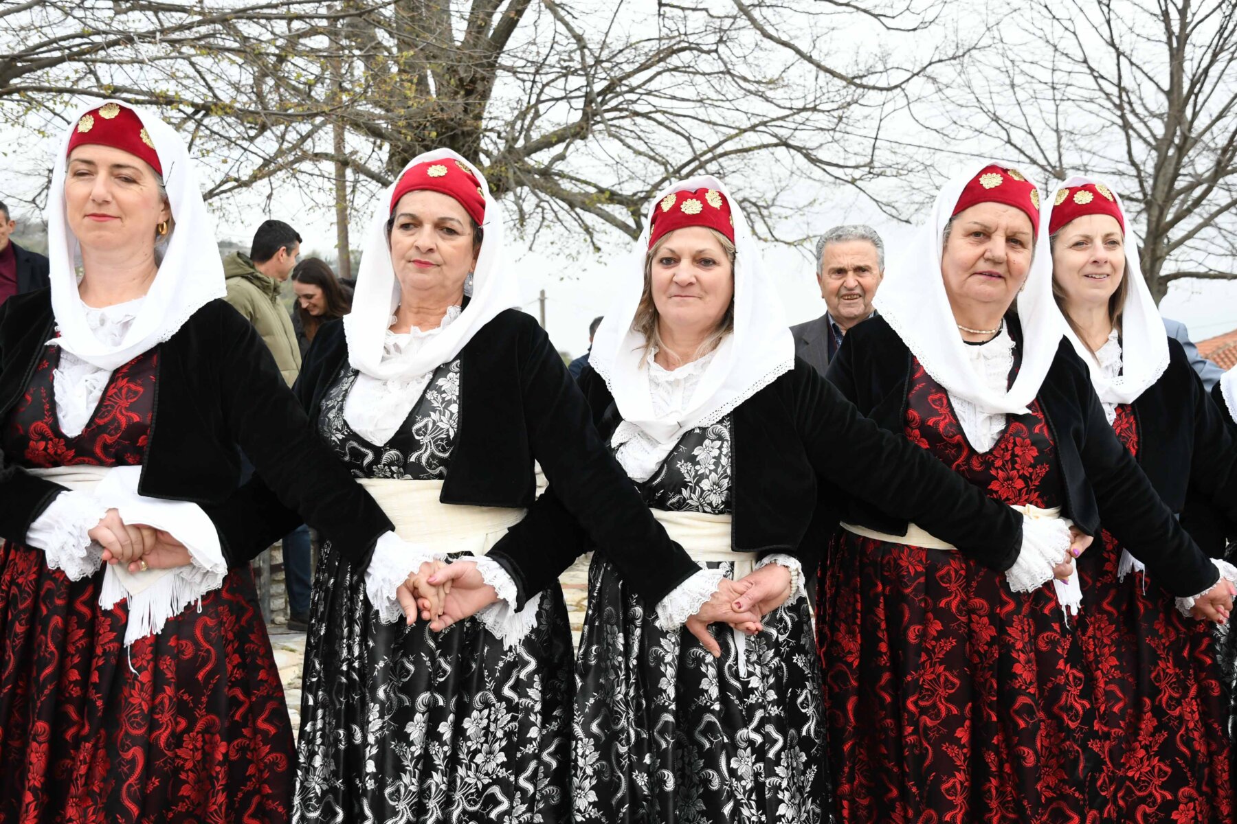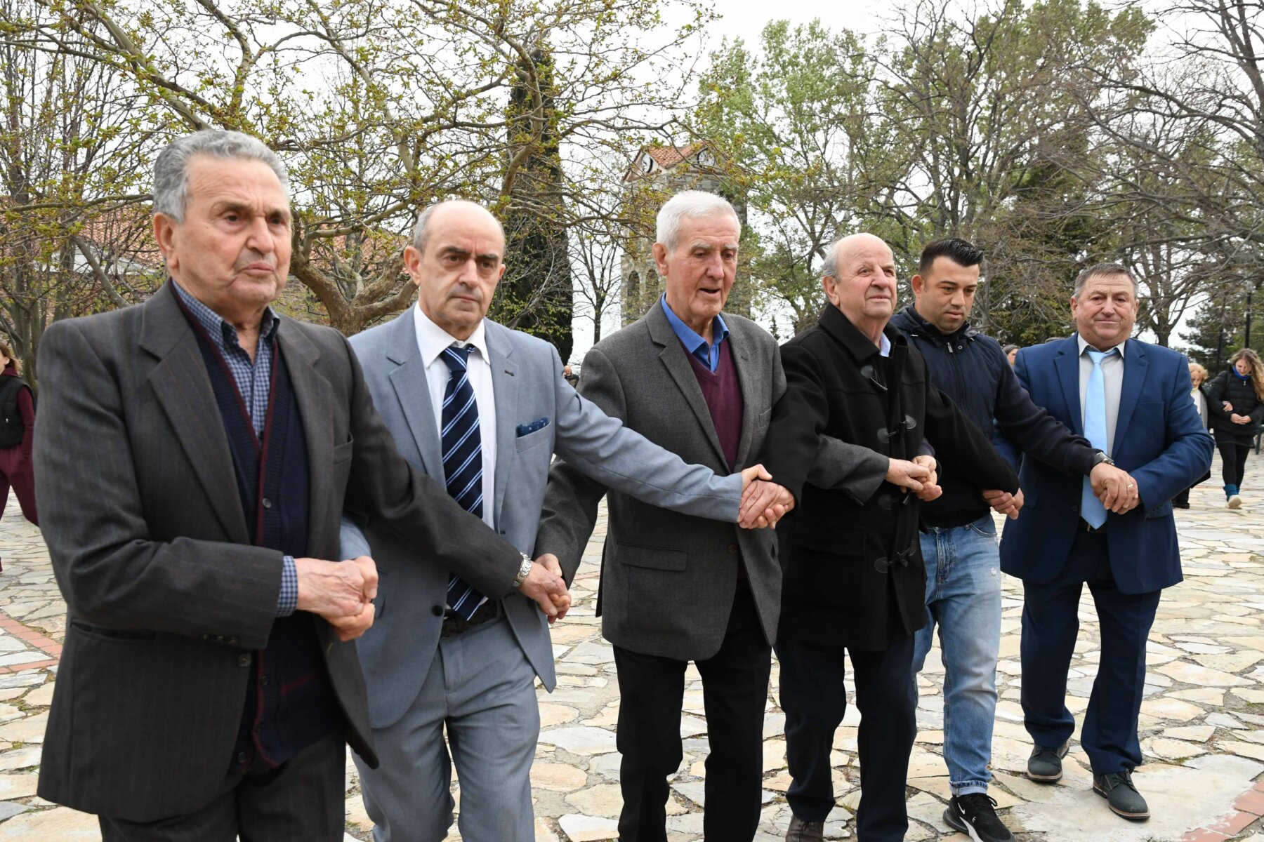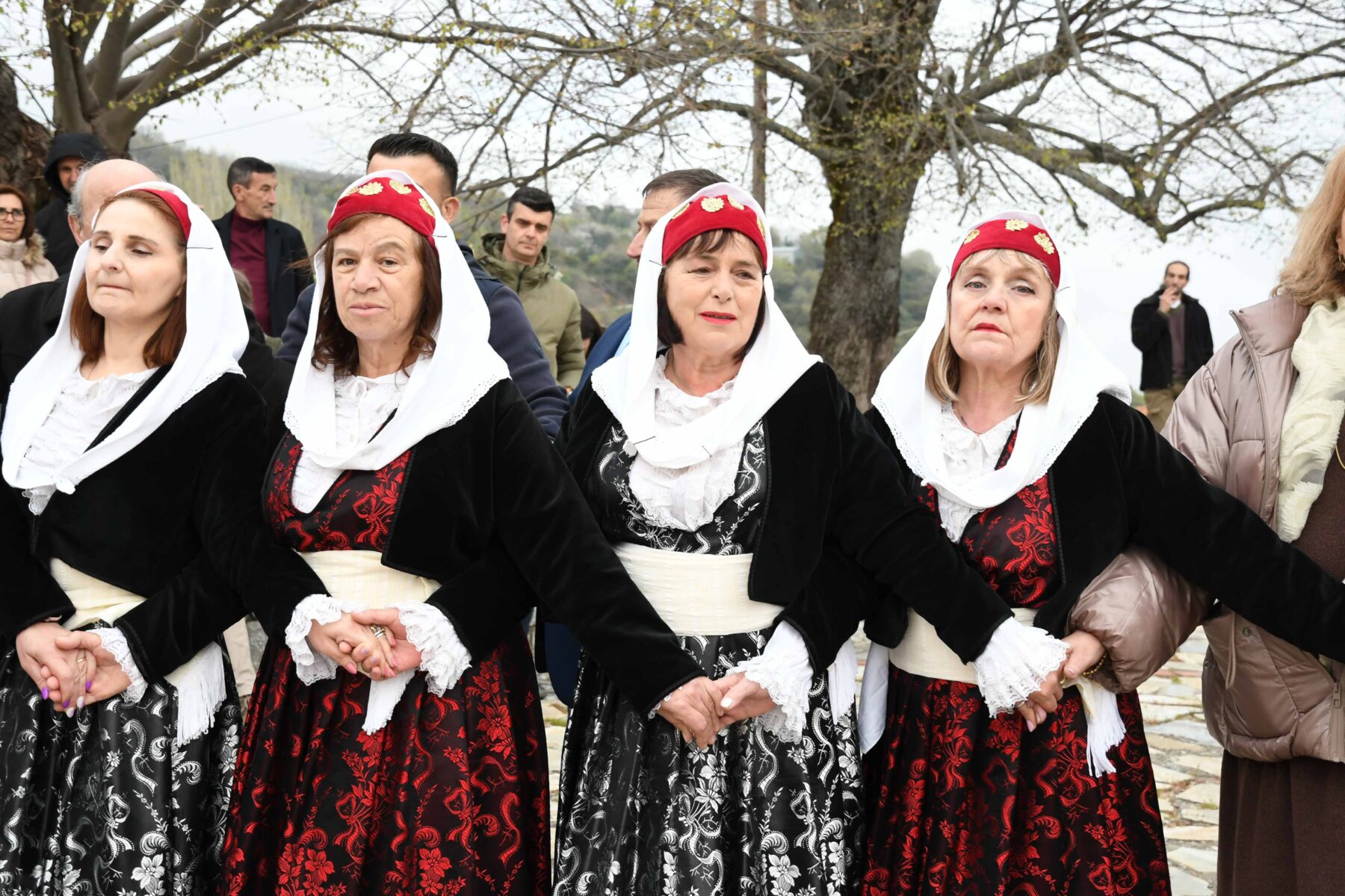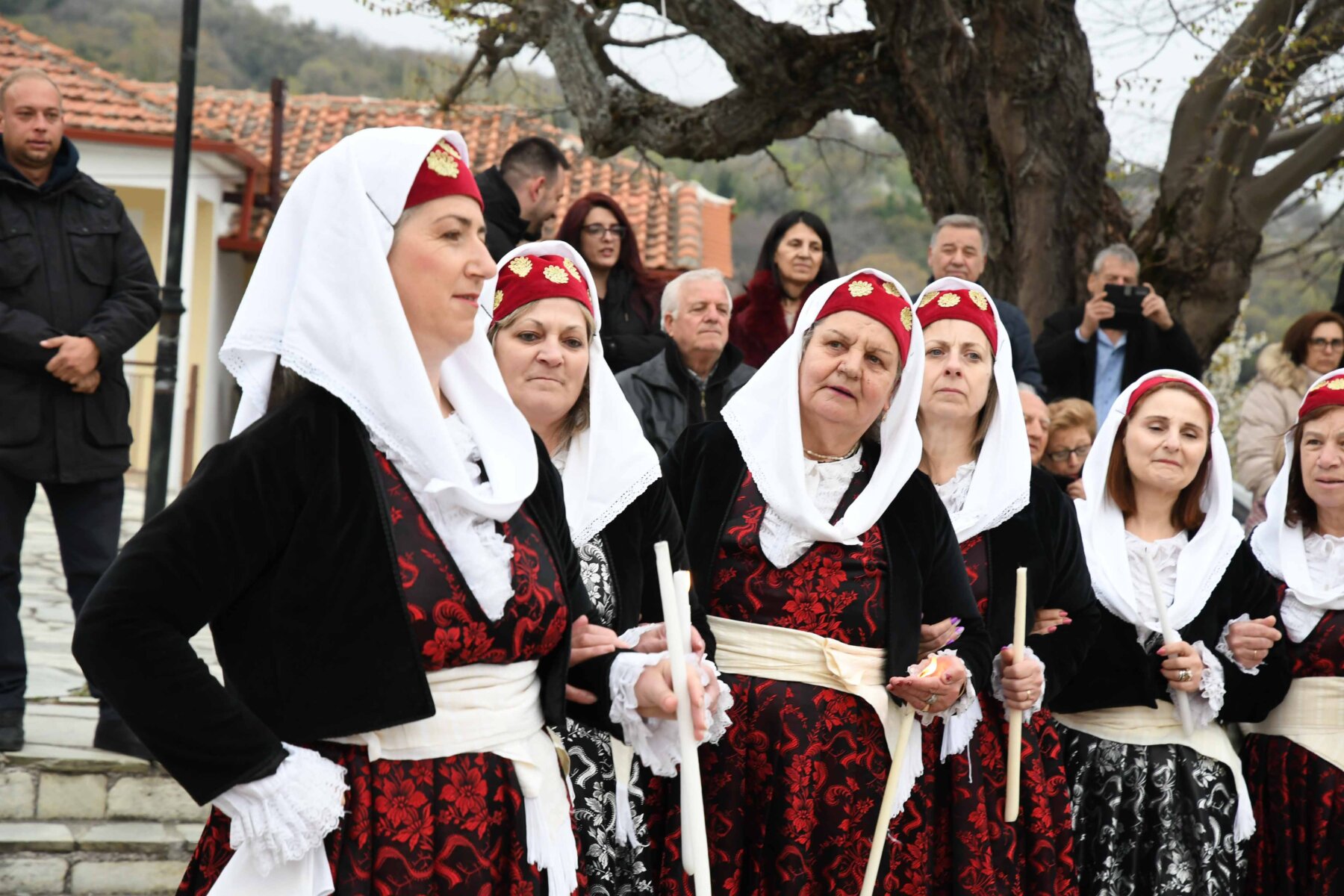 Σε δύο σειρές, μπροστά οι γυναίκες και πίσω οι άνδρες, ντόπιοι και επισκέπτες, με τους γηραιότερους να προπορεύονται, τραγούδησαν χωρίς συνοδεία μουσικών οργάνων με μοναδικό και ιδιαίτερο τρόπο «Σημαίνει ο Θεός, σημαίνει η Γη, σημαίνουν τα Ουράνια…», «Ήλιε μ’, γιατί άργησες να βγεις κι αργείς να βασιλέψεις…», χόρεψαν τον παραδοσιακό με σταυρωτά τα χέρια χορό, ενώ σε όλους μοιράστηκαν κόκκινο αυγό, πασχαλινό κουλούρι, μπάτζος και κρασί. Του χορού προηγήθηκε ο αναστάσιμος εσπερινός από τον αρχιερατικό επίτροπο της Αρχιερατικής Περιφέρειας Αγιάς, πρωτοπρεσβύτερο π. Αθανάσιο Μακρή, και τον ιερέα π. Παναγιώτη Τσιλιμίγκα.