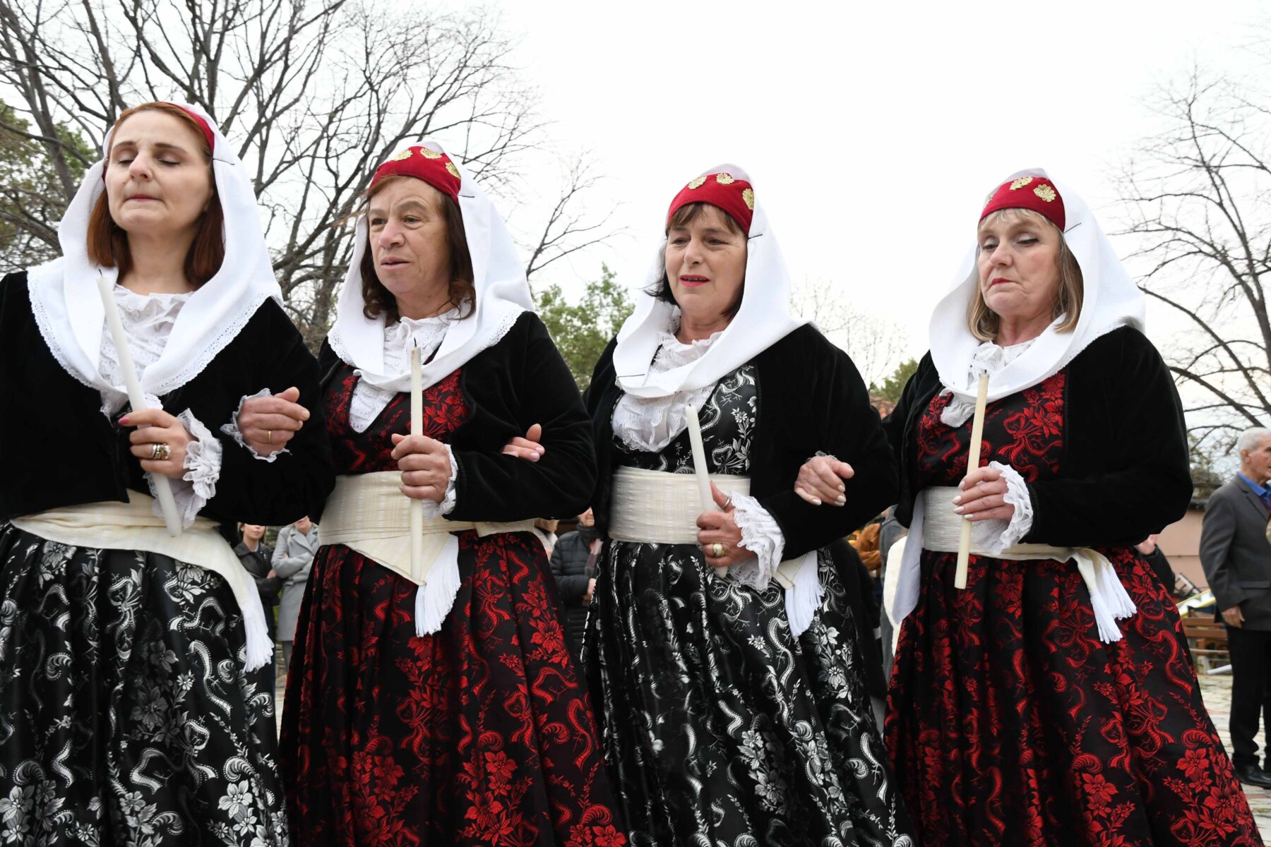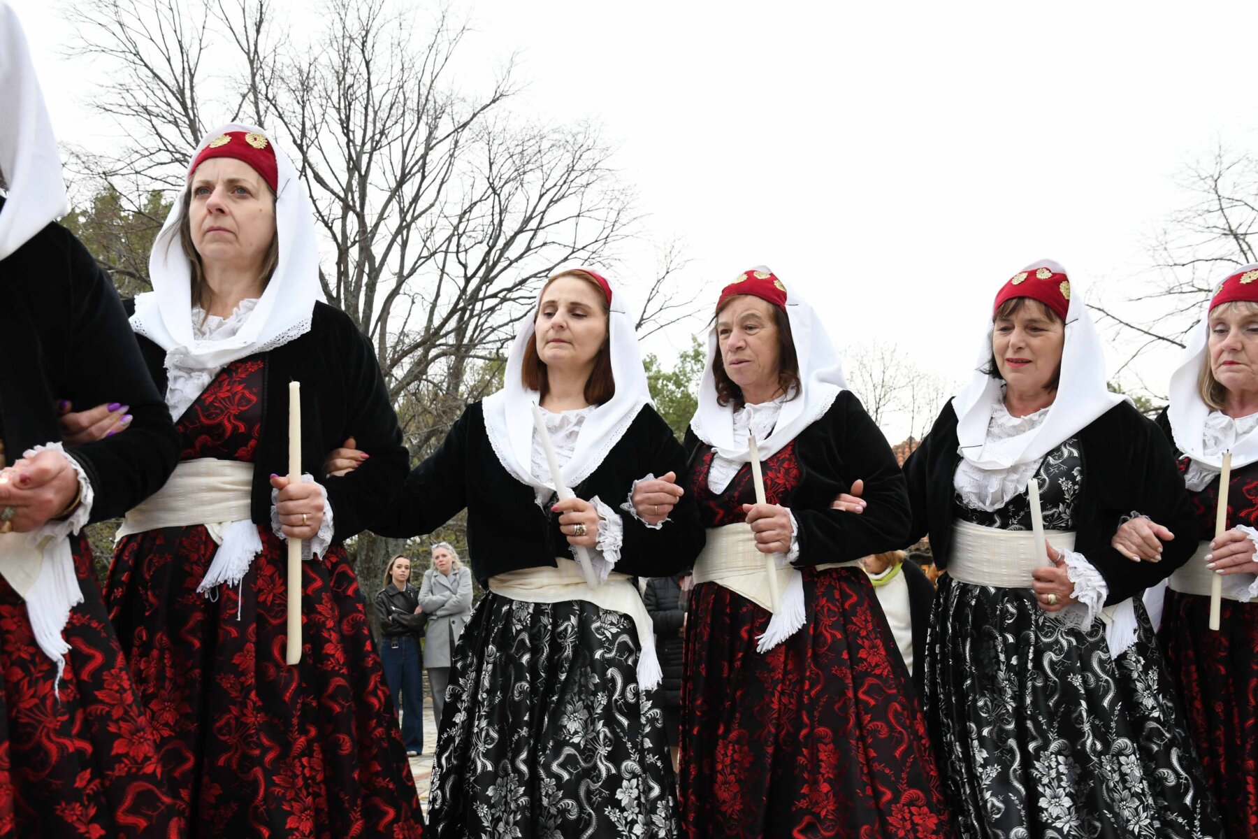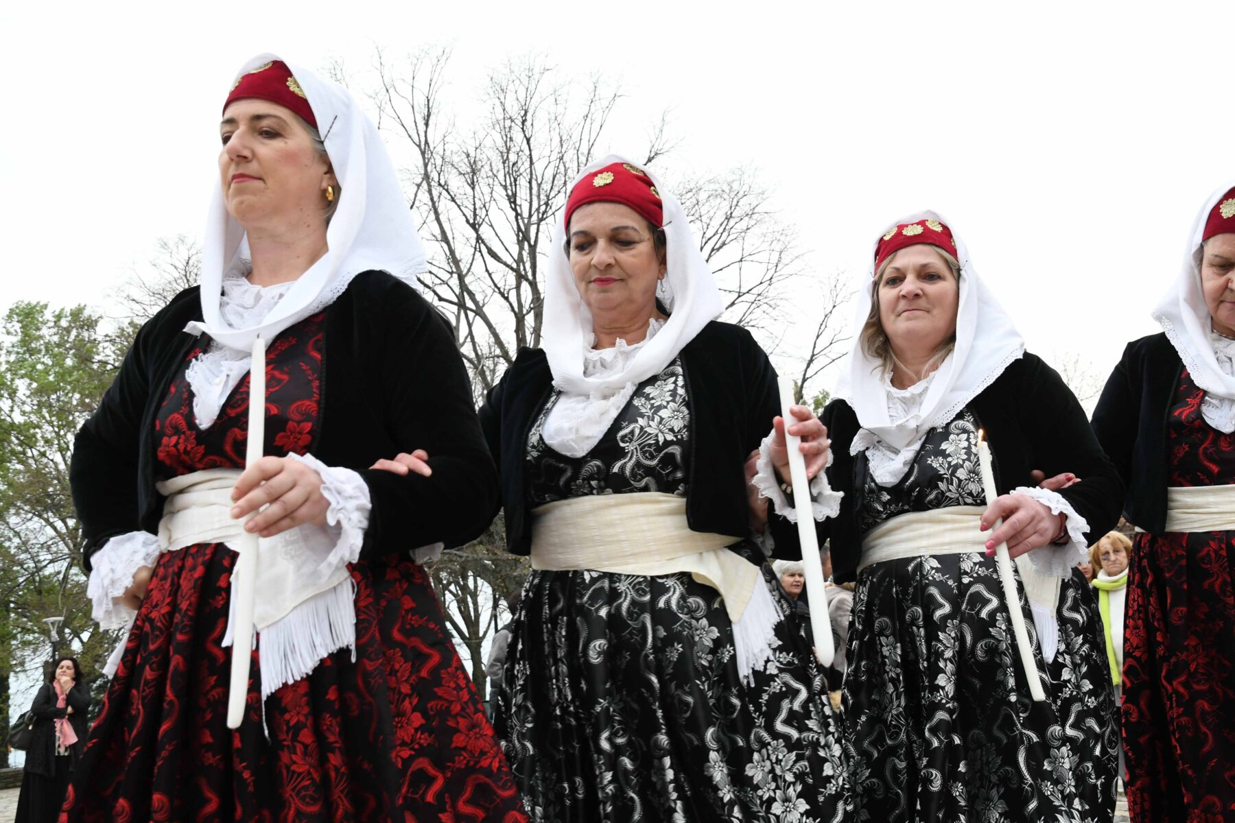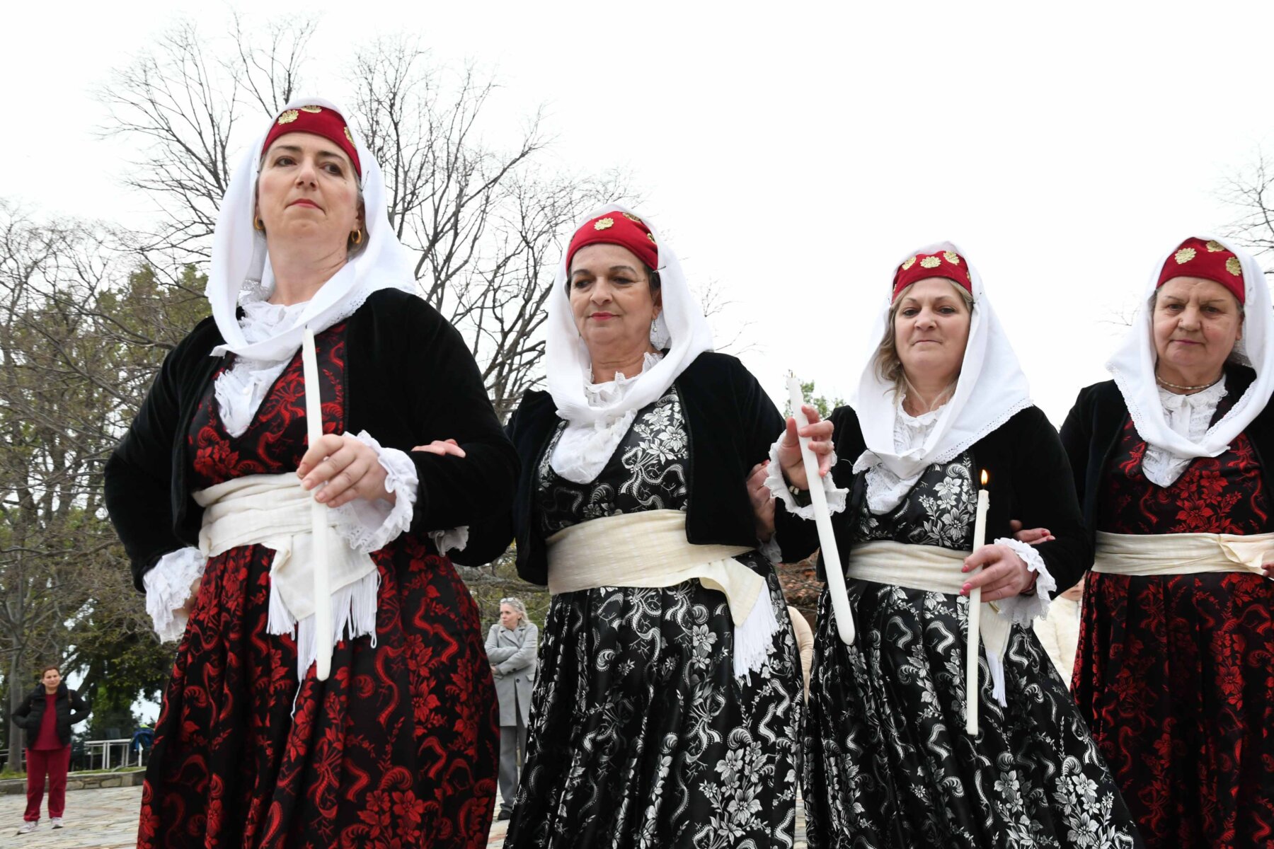 Σε δύο σειρές, μπροστά οι γυναίκες και πίσω οι άνδρες, ντόπιοι και επισκέπτες, με τους γηραιότερους να προπορεύονται, τραγούδησαν χωρίς συνοδεία μουσικών οργάνων με μοναδικό και ιδιαίτερο τρόπο «Σημαίνει ο Θεός, σημαίνει η Γη, σημαίνουν τα Ουράνια…», «Ήλιε μ’, γιατί άργησες να βγεις κι αργείς να βασιλέψεις…», χόρεψαν τον παραδοσιακό με σταυρωτά τα χέρια χορό, ενώ σε όλους μοιράστηκαν κόκκινο αυγό, πασχαλινό κουλούρι, μπάτζος και κρασί. Του χορού προηγήθηκε ο αναστάσιμος εσπερινός από τον αρχιερατικό επίτροπο της Αρχιερατικής Περιφέρειας Αγιάς, πρωτοπρεσβύτερο π. Αθανάσιο Μακρή, και τον ιερέα π. Παναγιώτη Τσιλιμίγκα.