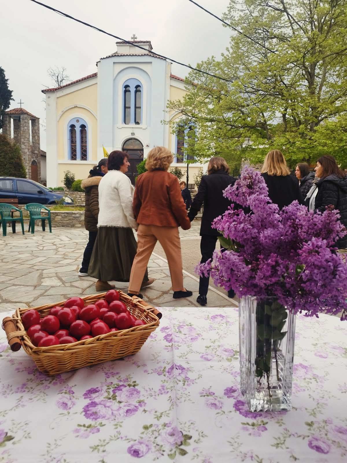 Η όμορφη εκδήλωση πραγματοποιήθηκε μετά τον αναστάσιμο εσπερινό που εψάλη στον Ιερό Ναό Αγίου Δημητρίου και σ’ αυτή παρουσιάστηκαν παραδοσιακοί πασχαλινοί χοροί από μέλη του συλλόγου και προσφέρθηκαν στον κόσμο πασχαλινά εδέσματα.