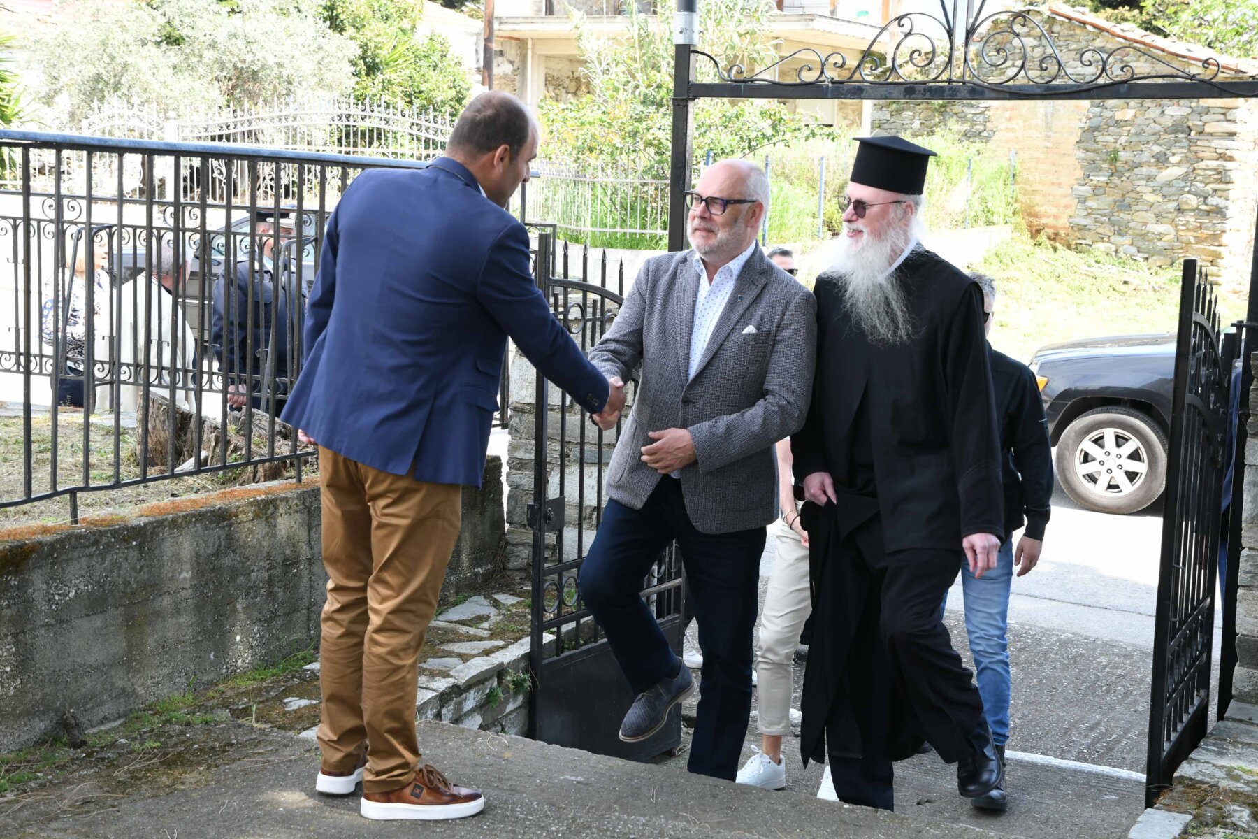 Την δεύτερη ημέρα της παρουσίας του στην Ελλάδα, είχε την επιθυμία να βρεθεί με ομοεθνείς του που ζουν χρόνια στην πατρίδα μας, και επέλεξε γι’ αυτόν τον λόγο να επισκεφθεί τους Νερόμυλους Αγιάς και την Ιερά Μονή Τιμίου Προδρόμου Ανατολής.