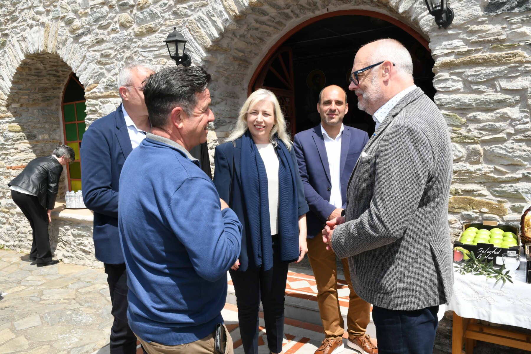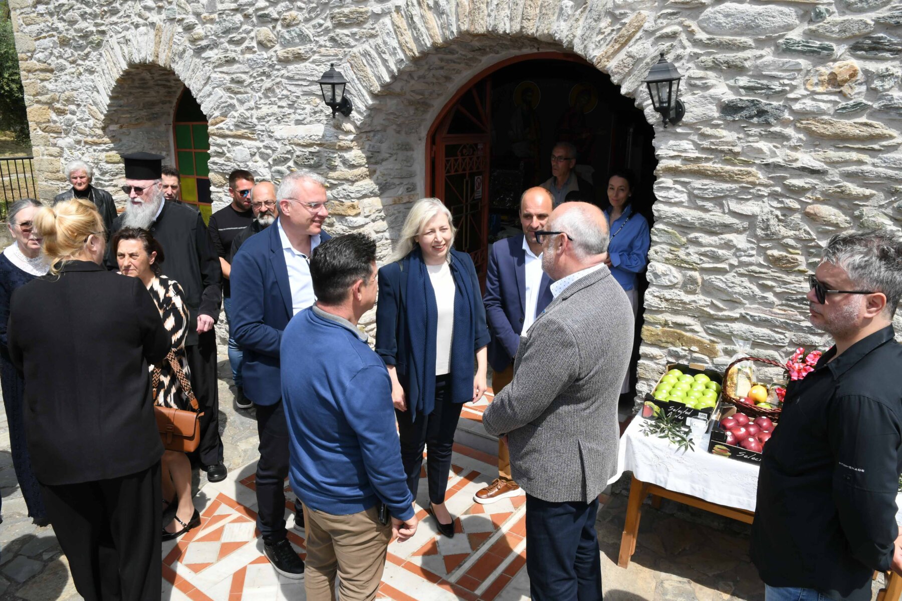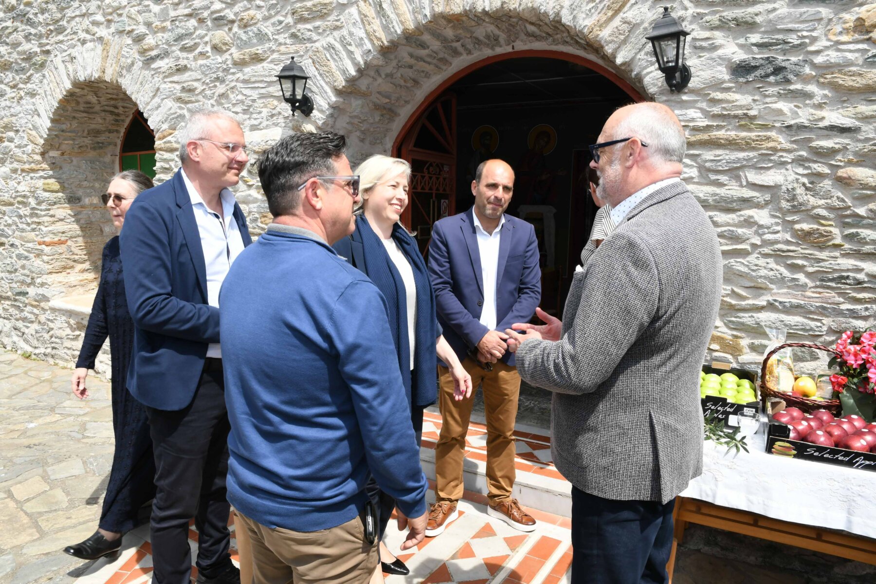 Μεταξύ των δύο επισκέψεων, σε Νερόμυλους και Ανατολή, ο κ. Karis και οι ακόλουθοί του συνέφαγαν στο Μεταξοχώρι, στην παραδοσιακή ταβέρνα «Κεραμίδι».