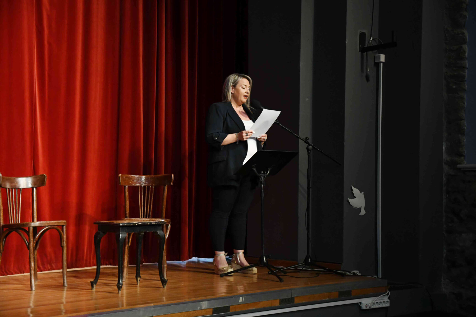 “Καλώς ήρθατε στην παράσταση. Είναι μεγάλη τιμή και χαρά που βρίσκεστε σήμερα εδώ, για να μοιραστούμε μία ακόμα θεατρική εμπειρία. Το θέατρο είναι κάτι περισσότερο από μία απλή παράσταση. Είναι μία συνάντηση ψυχών, μία γέφυρα ανάμεσα στη σκηνή και την καρδιά του θεατή.