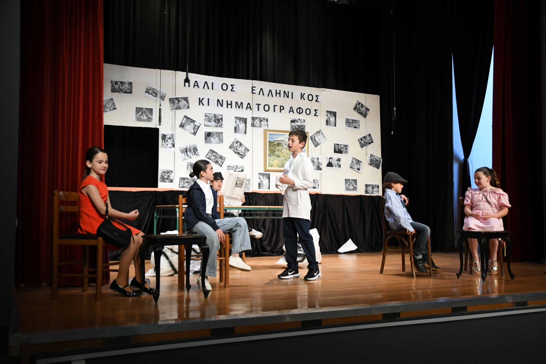 Για δεύτερη χρονιά, ετοιμάσαμε με τους μικρούς μας ηθοποιούς μία όμορφη παράσταση, αφιερωμένη αυτή τη φορά στον παλιό ελληνικό κινηματογράφο, με μικρές σκηνές από αγαπημένες ελληνικές ταινίες, γεμάτες νοσταλγία, διαχρονικές ατάκες και εποχές που έγραψαν και άφησαν ιστορία. Σκηνές, που γνώρισαν, ίσως για πρώτη φορά, μέσα από τη φετινή τους θεατρική εμπειρία. Οι πρόβες, η συνεργασία και η ομαδικότητα ήταν η βάση για το όλο αποτέλεσμα. Οι μικροί μας ηθοποιοί ζωντανεύουν κλασικούς χαρακτήρες της δεκαετίας του 60 και του 70, με στόχο να προκαλέσουν γέλιο, αλλά και ένα ευχάριστο διάλειμμα από την καθημερινότητα.