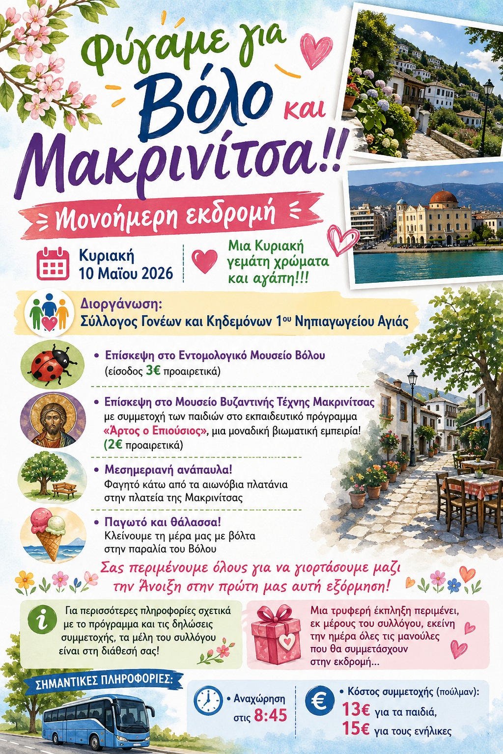 Διοργάνωση: Σύλλογος Γονέων και Κηδεμόνων 1ου Νηπιαγωγείου Αγιάς